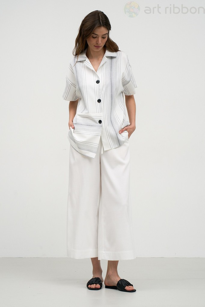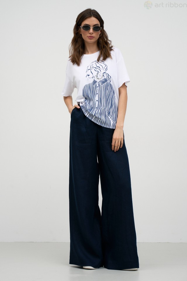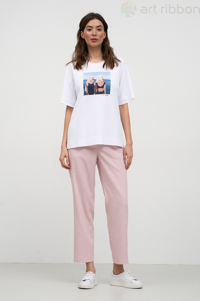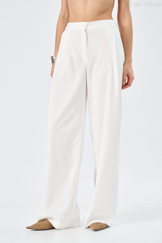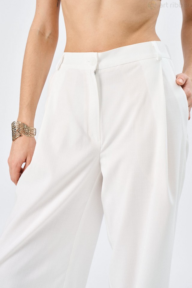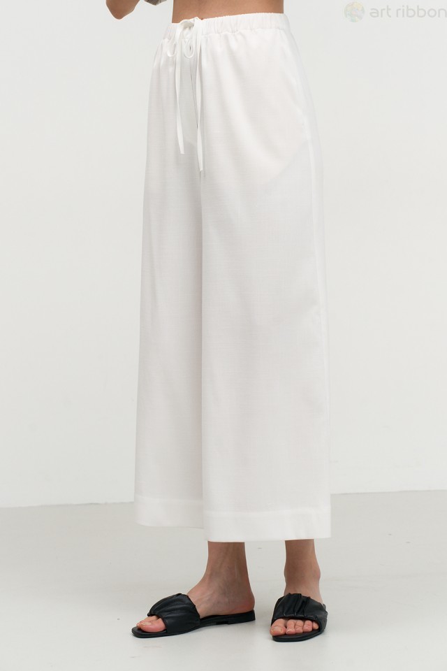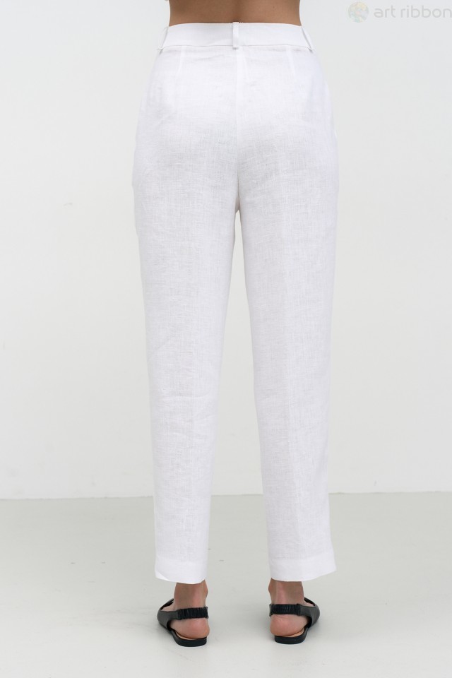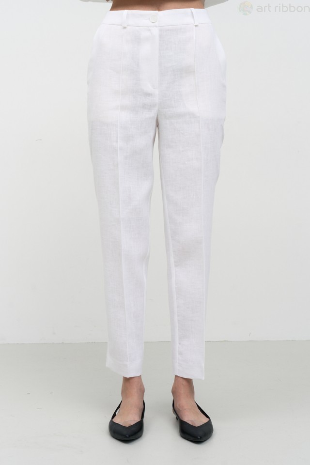 LINEN. Возможные размеры: 44-46-48-50-52-54. Идеальные классические брюки белого цвета из льна прекрасно дополнят Ваш летний гардероб. Брюки укороченные, полуприлегающего силуэта, с отстроченной стрел... Показать описаниекой, на притачном поясе. Брюки с центральной застежкой на тесьму-молнию, а также с карманами. Карманы изготовлены из трендовой подкладки, которая, за счет слияния с цветом кожи, не просвечивается. Возможно отличие фотографии по оттенку, связанное с разной цветопередачей монитора. Состав ткани:Лен: 100%. Длина юбки/брюк (см): 98, 98, 98, 98, 98, 98 Длина по боковому шву (см): 98, 98, 98, 98, 98, 98. Бедра юбки/брюки вдвое (см): 48.5, 50.5, 52.5, 54.5, 56.5, 58.5 Талия юбки/брюки вдвое (см): 36, 38, 40, 42, 44, 46 Подробное описание: https://artribbon.ru/m1000b-brjuki-zhenskie.html