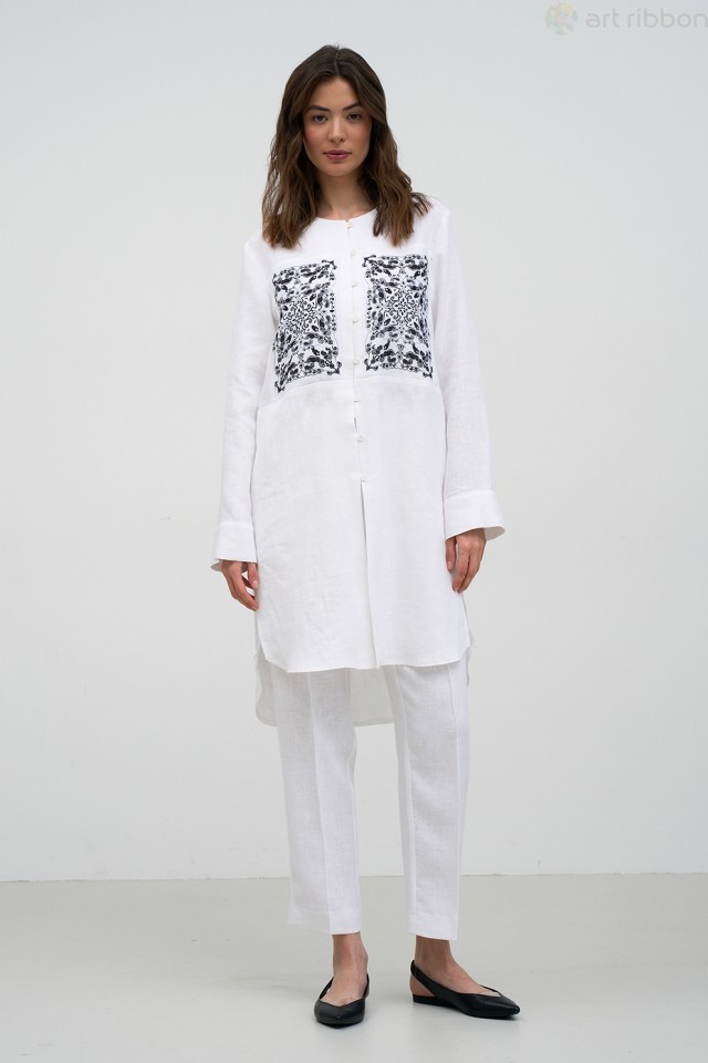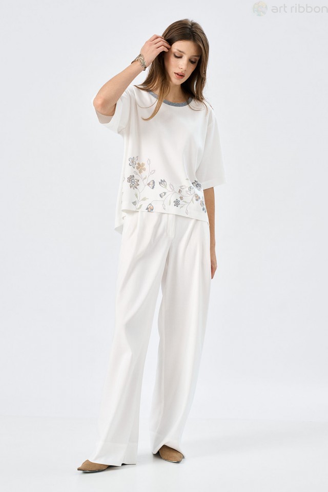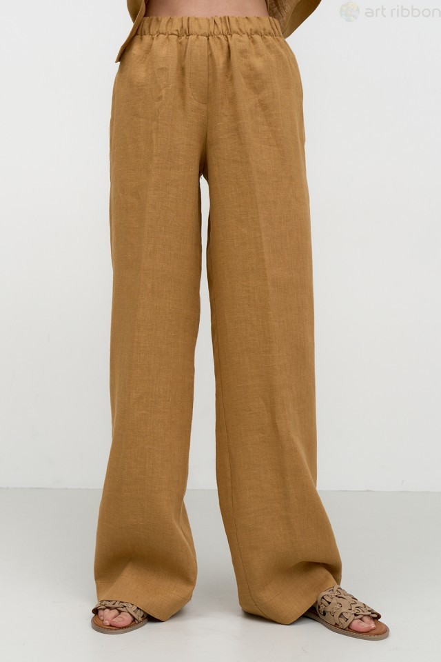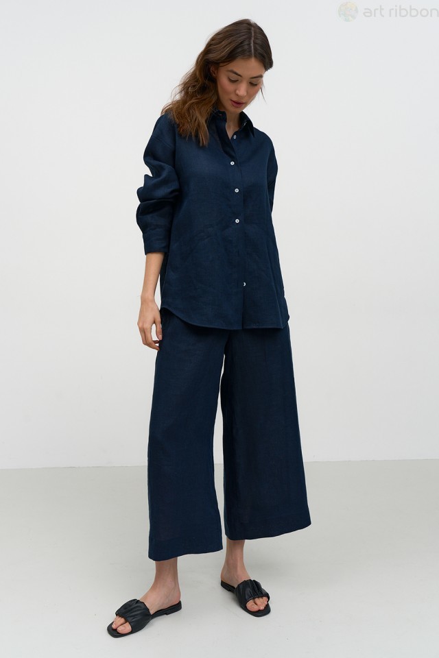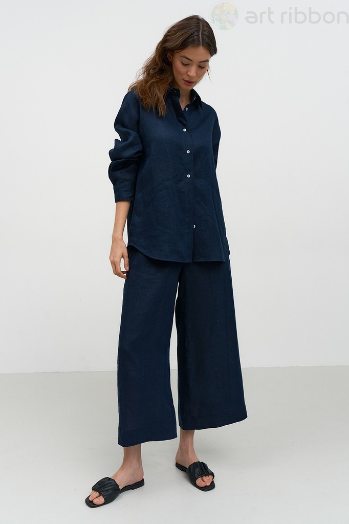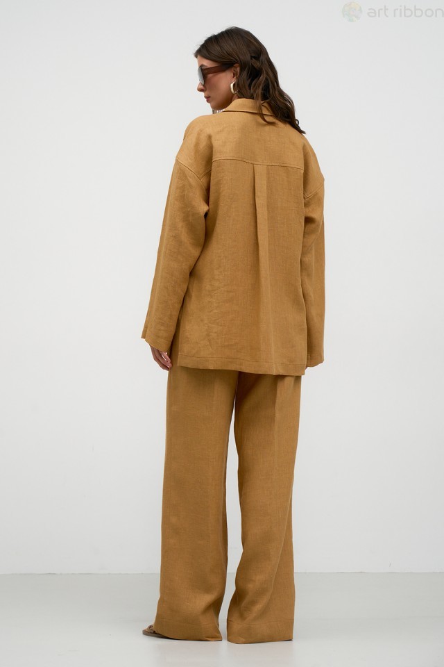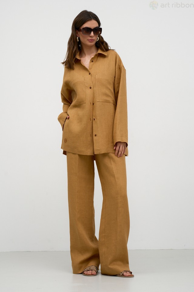 LINEN. Возможные размеры: 44-46-48-50-52-54. Стильный и актуальный костюм изо льна песочного цвета будет отличным выбором для создания различных летних луков. Костюм состоит из рубашки и брюк, декорир... Показать описаниеованных дизайнерской вышивкой. Рубашка свободного прямого силуэта. На спинке обработана кокетка и складка. В боковых швах - удлиненные разрезы. Рукав спущенный, длинный, воротник стояче-отложной. Застежка центральная на петли и пуговицы. Брюки свободного силуэта, с карманами в боковых швах. На задней половинке брюк обработан накладной карман с вышивкой. Пояс брюк на эластичной тесьме. Возможно отличие фотографии по оттенку, связанное с разной цветопередачей монитора. Состав ткани:Лен: 100%. Длина по центру спинки (см): 73, 73, 73, 73, 73, 73. По груди (см): 50, 52, 54, 56, 58, 60. Длина рукава (см): 51, 51, 51, 51, 51, 51. Ширина рукава (см): 21.6, 22.3, 23, 23.7, 24.4, 25.1. Длина юбки/брюк (см): 114, 114, 114, 114, 114, 114 Ширина изд внизу (см): 5456, 58, 60, 62, 64, 66. Ширина плеча (см): 22.6, 22.8, 23, 23.2, 23.4, 23.6. Ширина спинки (см): 53, 54, 55, 56, 57, 58. Длина по боковому шву (см): 114, 114, 114, 114, 114, 114. Бедра юбки/брюки вдвое (см): 49, 51, 53, 55, 57, 59 Талия юбки/брюки вдвое (см): 34, 36, 38, 40, 42, 44 Подробное описание: https://artribbon.ru/m1011-kostjum-zhenskij.html