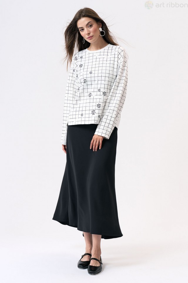MILANO. Возможные размеры: 48-50-52-54. Джемпер свободного силуэта выполнен из трикотажного полотна. Горловина круглой формы. Рукав длинный, полуреглан. Возможно отличие фотографии по оттенку, связанн... Показать описаниеое с разной цветопередачей монитора. Состав ткани:Вискоза: 72%, Эластан: 28%. Длина по центру спинки (см): 62, 62, 62, 62. По груди (см): 56, 58, 60, 62. По бедрам (см): 52, 54, 56, 58. Длина рукава (см): 52, 52, 52, 52. Ширина рукава (см): 21.5, 22.2, 22.9, 23.6. Ширина изд внизу (см): 52, 54, 56, 58. Ширина спинки (см): 56, 57, 58, 59. Подробное описание: https://artribbon.ru/m1050t-dzhemper-zhenskij.html
