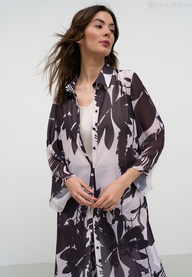 CHIFFON. Возможные размеры: 46-48-50-52-54. Туника изготовлена из легкого и драпирующегося шифона, придающего ей элегантность и легкость. Воротник - стояче-отложной Рукав втачной,свободного кроя. Туни... Показать описаниека застегивается по центру с помощью петель и пуговиц, что обеспечивает удобство и позволяет регулировать степень открытости выреза. Это позволяет каждой женщине подобрать наиболее комфортный вариант для себя. Важно отметить, что фотография может незначительно отличаться по оттенку из-за различий в цветопередаче мониторов. Состав ткани:Полиэстер: 100%. Длина по центру спинки (см): 114, 114, 114, 114, 114. По груди (см): 51, 53, 55, 57, 59. Длина рукава (см): 48, 48, 48, 48, 48. Ширина рукава (см): 20.5, 21.2, 21.9, 22.6, 23.3. Ширина плеча (см): 11.2, 11.4, 11.6, 11.8, 12. Ширина спинки (см): 36.5, 37.5, 38.5, 39.5, 40.5. Подробное описание: https://artribbon.ru/m1033t-tunika-zhenskaja.html