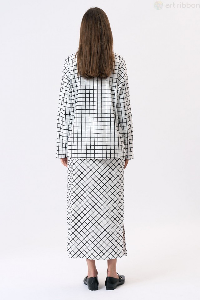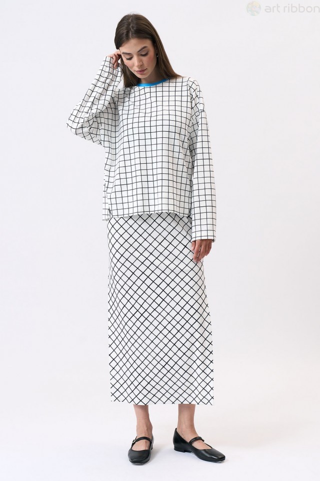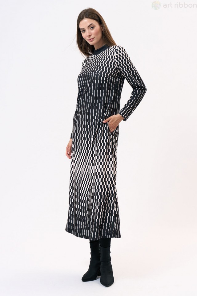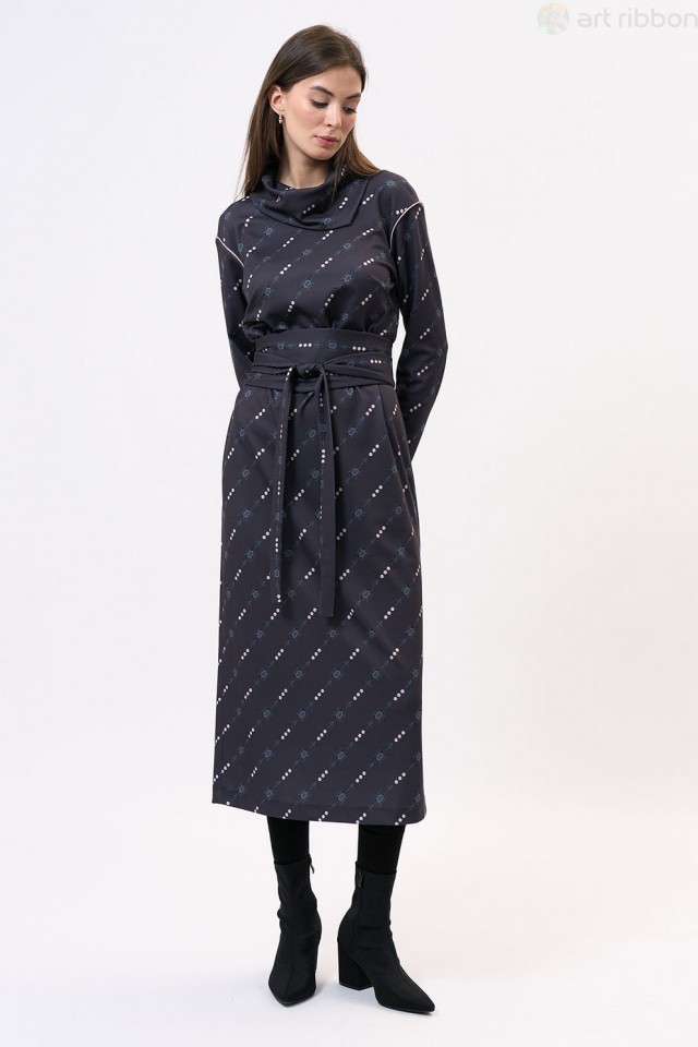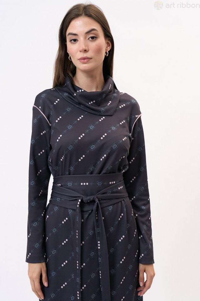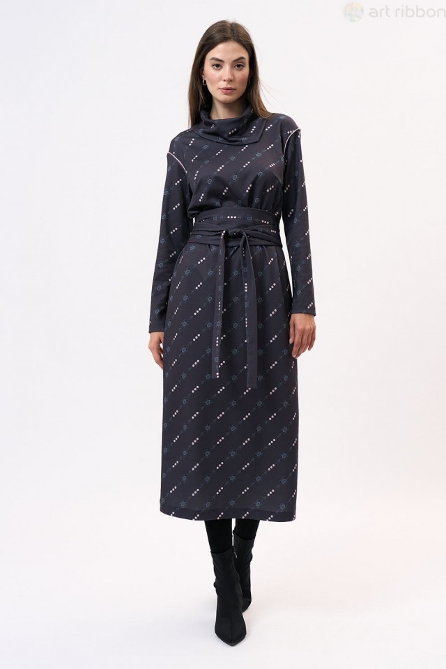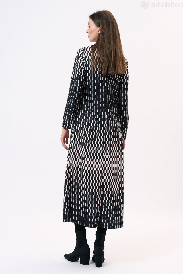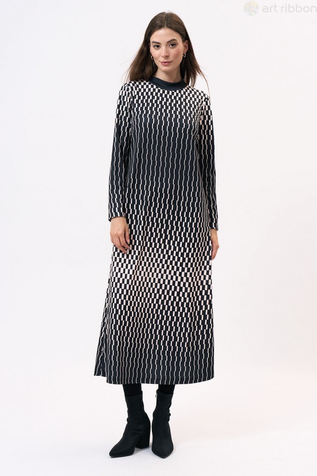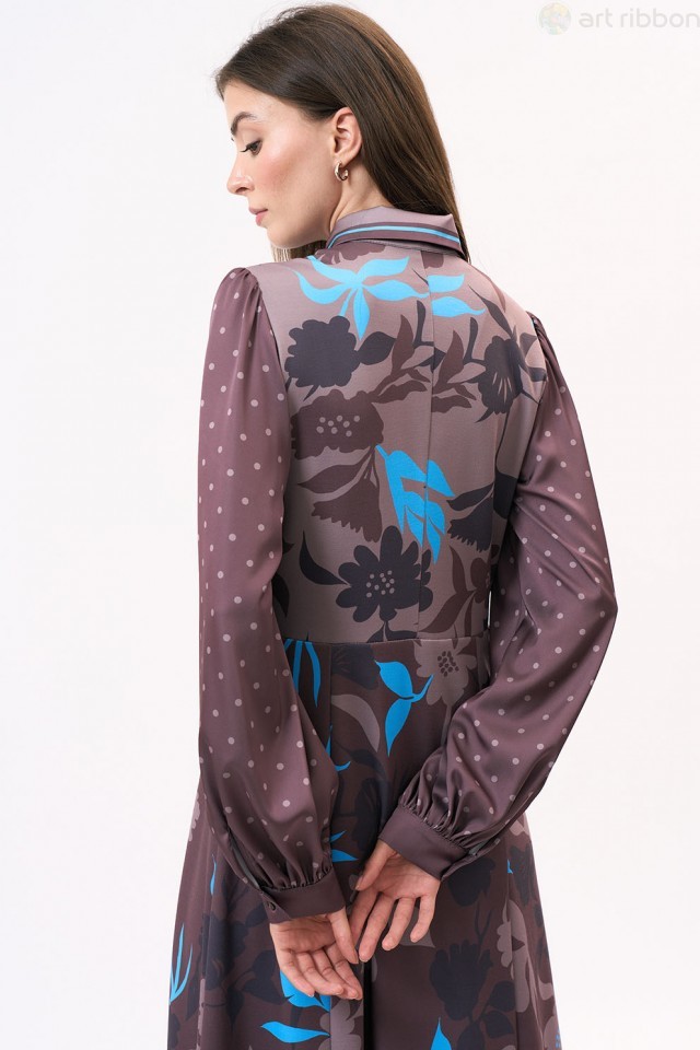 MILANO. Возможные размеры: 46-48-50-52. Платье полуприлегающего силуэта, выполнено из трикотажного полотна, с принтом. Платье с отложным воротником и застежкой на петли и пуговицы в плечевом шве. Рука... Показать описаниев спущенный, втачной. В Пройме платья обработан отделочный кант. Изделие без подкладки.. Возможно отличие фотографии по оттенку, связанное с разной цветопередачей монитора. Состав ткани:Вискоза: 70%, Полиэстер: 27%, Спандекс: 3%. Длина по центру спинки (см): 125, 125, 125, 125. По груди (см): 49, 51, 53, 55. По бедрам (см): 52, 54, 56, 58. По талии (см): 47, 49, 51, 53. Длина рукава (см): 58, 58, 58, 58. Ширина рукава (см): 17.8, 18.5, 19.2, 19.9. Ширина плеча (см): 13.1, 13.3, 13.5, 13.7. Ширина спинки (см): 37.5, 38.5, 39.5, 40.5. Подробное описание: https://artribbon.ru/m1047p-plat-e-zhenskoe.html