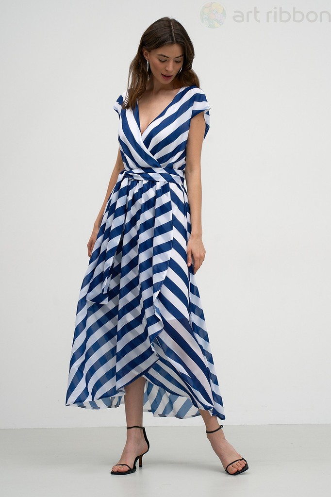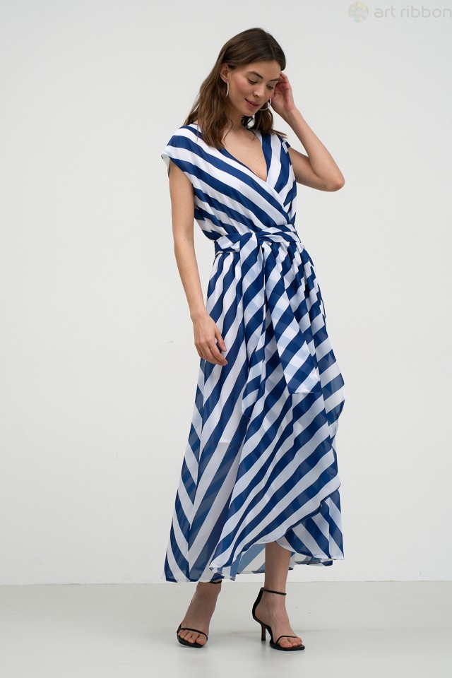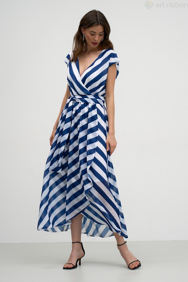 CHIFFON. Возможные размеры: 46-48-50-52-54-56. Эффектное платье в широкую диагональную полоску выгодно подчеркивает достоинства Вашей фигуры.Талия на эластичной тесьме. По переду иммитация запаха. В э... Показать описаниетом платье Вы обратите на себя внимание и на торжественном мероприятии, и на вечерней прогулке в обычный день. Изделие на подкладке. Состав ткани:Вискоза: 50%, Полиэстер: 40%, Шелк: 10%. Длина по центру спинки (см): 132, 132, 132, 134, 134, 134, 134. По груди (см): 48, 50, 52, 55, 57, 59, 61. По талии (см): 34, 36, 38, 40, 42, 44, 46. Длина рукава (см): 16, 16, 16, 17, 17, 17, 17. Ширина изд внизу (см): 106, 108, 110, 112, 114, 116, 118. Ширина спинки (см): 46, 47, 48, 50, 51, 52, 53. Подробное описание: https://artribbon.ru/m1030p-plat-e-zhenskoe.html
