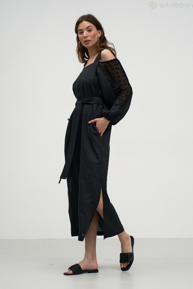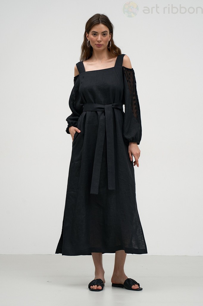 LINEN. Возможные размеры: 46-48-50-52. Романтичное трендовое платье, выполненное из легкой, качественной льняной ткани станет превосходным выбором для Вашего летнего гардероба. Платье свободного силуэ... Показать описаниета с карманами в боковых швах. Романтичный образ изделию придают бретели и спущенные рукава со вставками из кружева. Изделие на хлопковой подкладке. Возможно отличие фотографии по оттенку, связанное с разной цветопередачей монитора. Состав ткани:Лен: 100%. Длина по центру спинки (см): 123, 123, 123, 123. По груди (см): 51, 53, 55, 57. По бедрам (см): 56, 58, 60, 62. Длина рукава (см): 47, 47, 47, 47. Подробное описание: https://artribbon.ru/m1007p-plat-e-zhenskoe.html