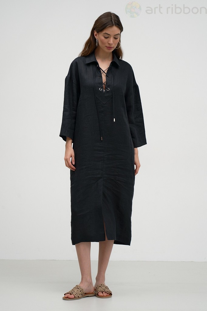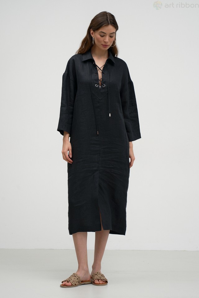 LINEN. Возможные размеры: 44-46-48-50. Комфортное и стильное льняное платье из мягкого льна станет настоящей находкой этого лета. Платье прямого силуэта, со средним швом и шлицей. Рукав укороченный вт... Показать описаниеачной. Горловина V-образной формы с декоративными люверсами. Воротник стояче-отложной. В боковых швах обработаны карманы. Изделие без подкладки. Возможно отличие фотографии по оттенку, связанное с разной цветопередачей монитора. Состав ткани:Лен: 100%. Длина по центру спинки (см): 117, 117, 117, 117. По груди (см): 52, 54, 56, 58. По бедрам (см): 52, 54, 56, 58. По талии (см): 44, 46, 48, 50. Ширина рукава (см): 20.9, 21.6, 22.3, 23. Размер воротника (см): 35, 35.5, 36, 36.5. Ширина плеча (см): 23.6, 23.8, 24, 24.2. Ширина спинки (см): 51, 52, 53, 54. Подробное описание: https://artribbon.ru/m1002p-plat-e-zhenskoe.html
