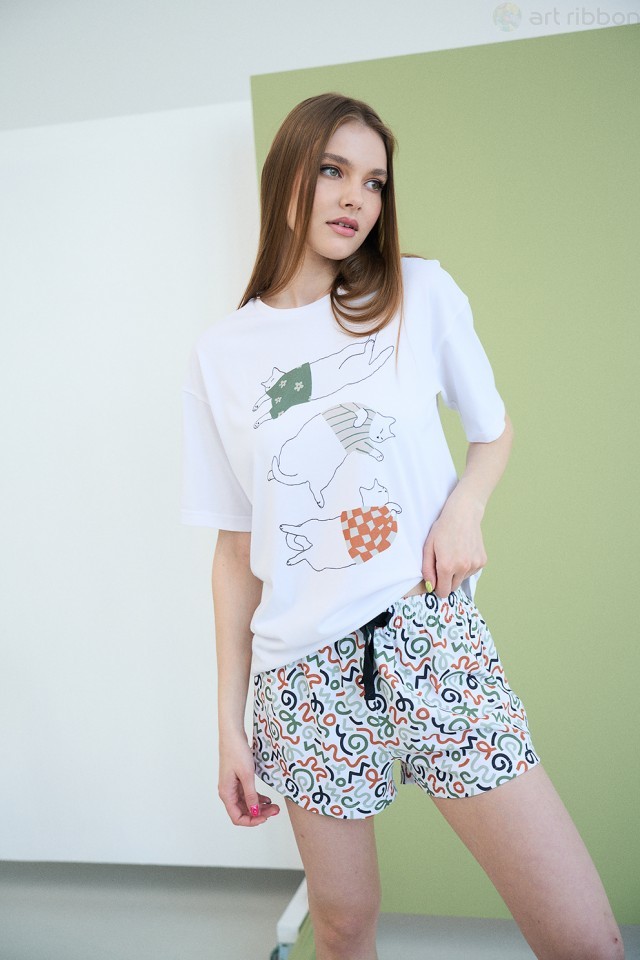 Эволюшен. Возможные размеры: 42-44-46-48. Очаровательный комплект для дома, созданный специально для женщин, обладает уникальным сочетанием нежности и уюта. Он словно воплощение мечты о комфорте и сти... Показать описаниеле одновременно. Благодаря использованию хлопка в изготовлении этой особой одежды, она приобретает особое очарование и легкость. Пижама – это не просто комплект из футболки и шорт, это целый символ уюта и домашнего тепла.Невероятно нежные материалы порадуют вашу кожу своей мягкостью, словно ласковое прикосновение летнего бриза. Шорты и футболка, великолепно дополняя друг друга, создают гармоничный образ для отдыха в уютном уголке вашего дома. Этот комплект призван подчеркнуть вашу естественную красоту без лишних усилий.Дизайн пижамы с шортами делает его незаменимым атрибутом повседневной роскоши. Будь то чашка горячего чая на балконе или уютный вечер за просмотром любимого сериала – эта одежда позволит вам по-настоящему расслабиться и насладиться моментом. Она словно создана для того, чтобы вы чувствовали себя комфортно и уверенно каждую минуту вашего отдыха.Этот комплект – верный выбор для тех, кто ценит не только стиль и качество, но также заботится о максимальном комфорте своего отдыха дома. Не отказывайте себе в возможности окунуться в атмосферу уюта и расслабленности с этим очаровательным комплектом домашней одежды! Состав ткани:Вискоза: 72%, Спандекс: 28%. Подробное описание: https://artribbon.ru/g1011-komplekt-domashnij-zhenskij.html