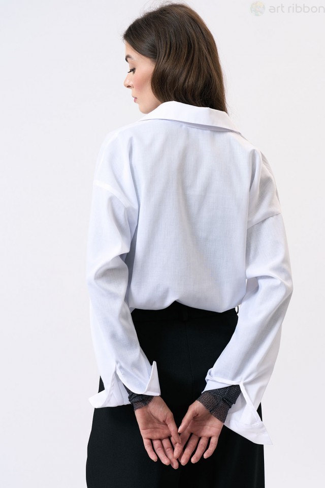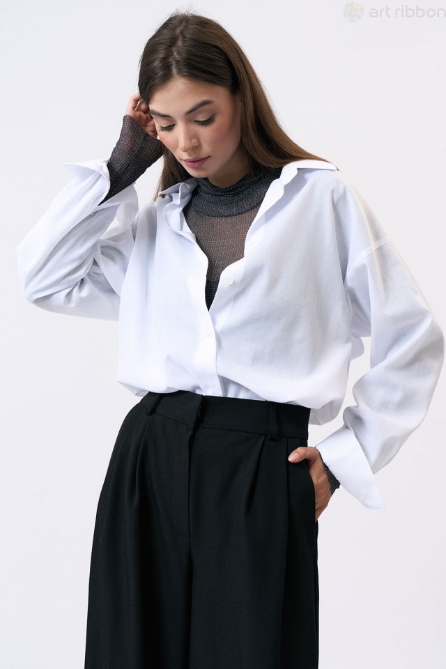 COTTON. Возможные размеры: 44-46-48-50-52-54. Блузка из хлопка - это базовая вещь на протяжении всего года. Рубашка женская из х/б ткани прямого силуэта в стиле oversize. Рубашка с центральной ботовой... Показать описание застежкой на петли и пуговицы. Воротник рубашечного типа на стойке. Рукав рубашечного типа, заканчивающийся манжетой, застегивающейся на петли и пуговицы. Возможно отличие фотографии по оттенку, связанное с разной цветопередачей монитора. Состав ткани:Хлопок: 82%, Полиэстер: 18%. Длина по центру спинки (см): 67, 67, 67, 67, 67, 67. По груди (см): 53, 55, 57, 59, 61, 63. По бедрам (см): 54, 56, 58, 60, 62, 64. Длина рукава (см): 50, 50, 50, 50, 50, 50. Размер воротника (см): 21.5, 22, 22.5, 23, 23.5, 24. Ширина изд внизу (см): 20, 22, 24, 26, 28, 30. Ширина плеча (см): 24.6, 24.8, 25, 25.2, 25.4, 25.6. Ширина спинки (см): 53, 54, 55, 56, 57, 58. Подробное описание: https://artribbon.ru/m1073t-rubashka-zhenskaja.html