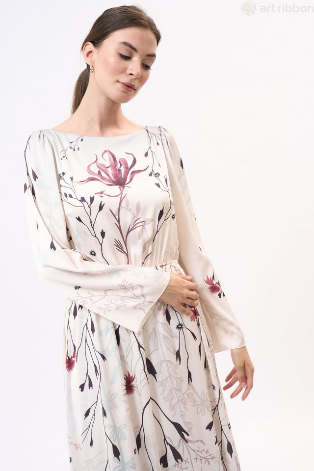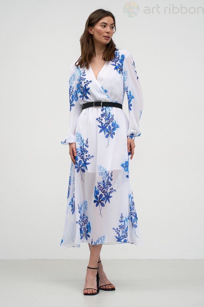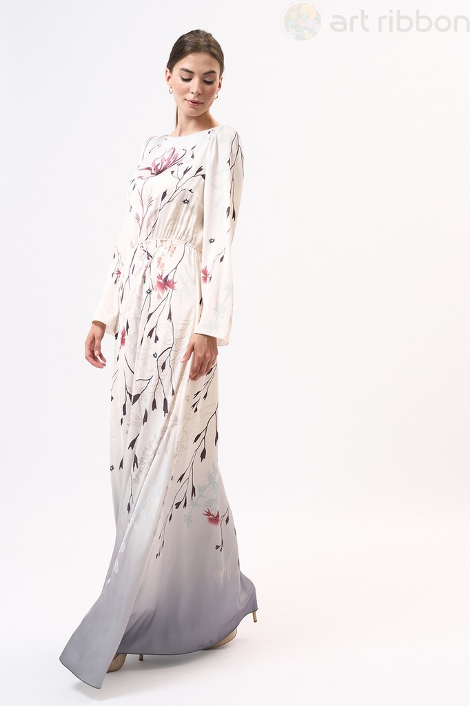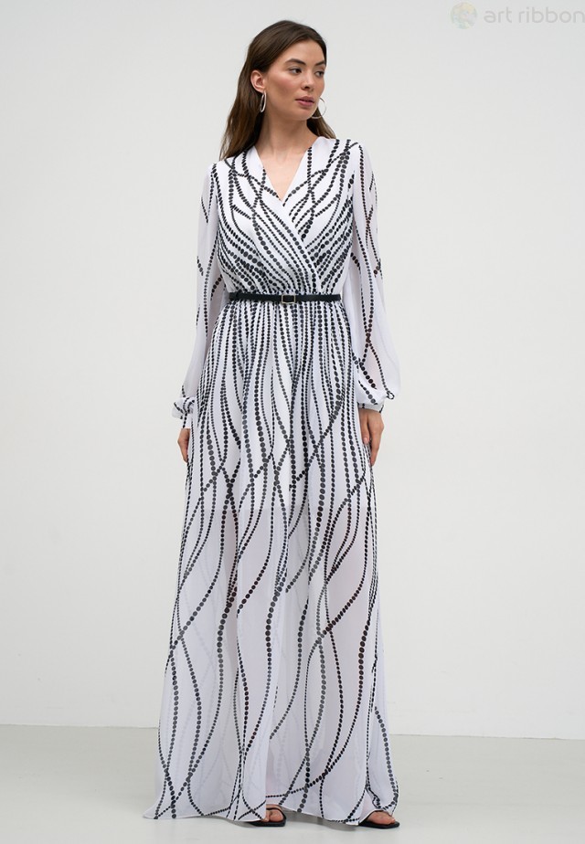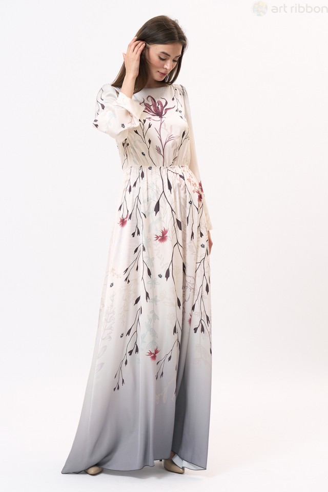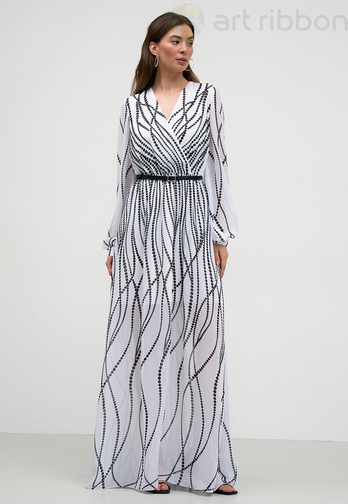 CHIFFON. Возможные размеры: 44-46-48-50-52-54. Нарядное платье длиной maxi с неповторимым дизайнерским принтом сделает Ваш образ незабываемым и ярким. Горловина V-образной формы, рукав длинный, втачно... Показать описанией с манжетой. Платье отрезное по линии талии, на эластичной тесьме. Изделие на подкладке. Возможно отличие фотографии по оттенку, связанное с разной цветопередачей монитора. Состав ткани:Полиэстер: 100%. Длина по центру спинки (см): 154, 154, 154, 154, 154, 154. По груди (см): 48, 50, 52, 54, 56, 58. По талии (см): 48, 50, 52, 54, 56, 58. Длина рукава (см): 65, 65, 65, 65, 65, 65. Ширина рукава (см): 17.6, 18.3, 19, 19.7, 20.4, 21.1. Ширина плеча (см): 10.3, 10.5, 10.7, 10.9, 11.1, 11.3. Ширина спинки (см): 34, 35, 36, 37, 38, 39. Подробное описание: https://artribbon.ru/m1026p-plat-e-zhenskoe.html