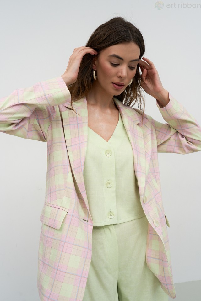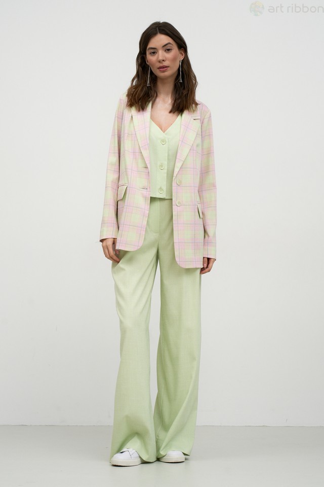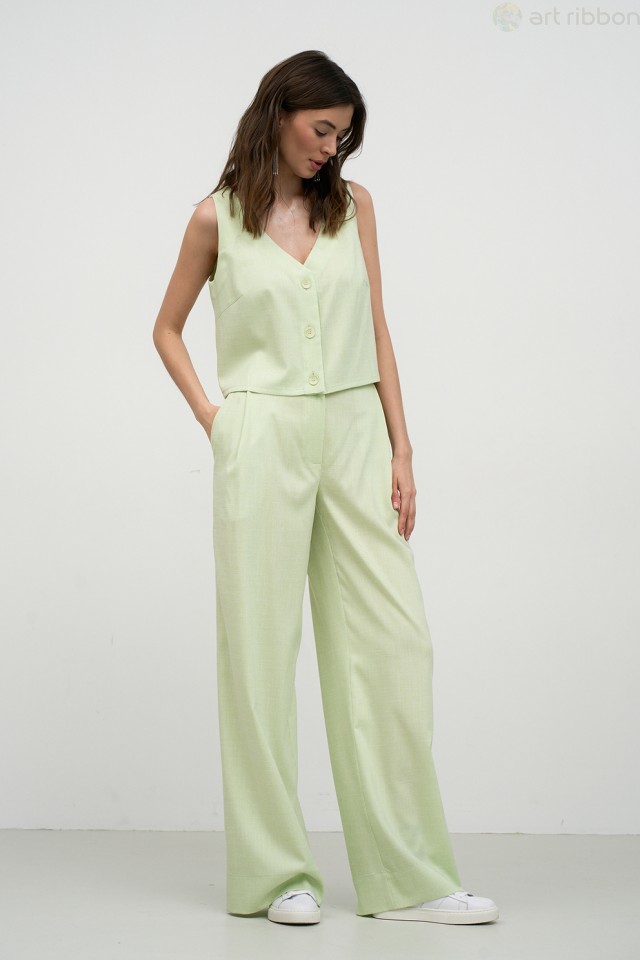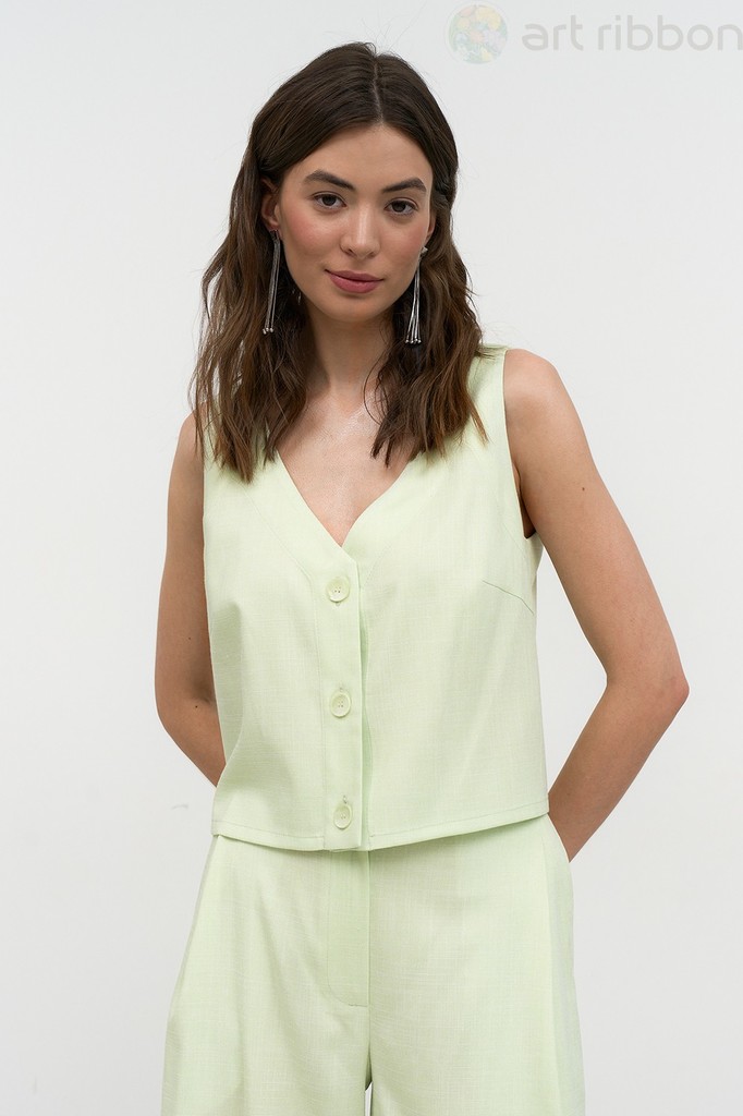 COTTON. Возможные размеры: 44-46-48-50-52-54. Идеальным дополнением к костюму М1006 станет жилет трендового лаймового цвета. Жилет полуприлегающего силуэта, с декоративной вышивкой на спинке. Горловин... Показать описаниеа V-образной формы, застежка центральная на петли и пуговицы. Возможно отличие фотографии по оттенку, связанное с разной цветопередачей монитора. Состав ткани:Хлопок: 85%, Вискоза: 15%. Длина по центру спинки (см): 44, 44, 44, 44, 44, 44. По груди (см): 49, 51, 53, 55, 57, 59. Ширина изд внизу (см): 49, 51, 53, 55, 57, 59. Ширина плеча (см): 4, 4.2, 4.4, 4.6, 4.8, 5. Ширина спинки (см): 32, 33, 34, 35, 36, 37. Подробное описание: https://artribbon.ru/m1019j-1-zhilet-zhenskij.html