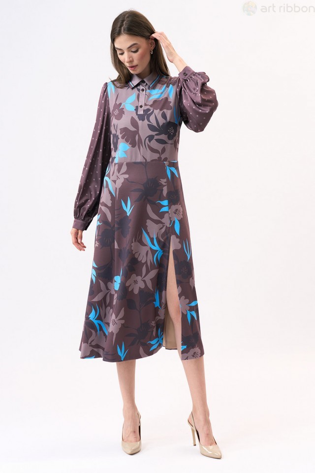 MILANO. Возможные размеры: 46-48-50-52. Платье полуприлегающего силуэта, выполнено из трикотажного полотна в комбинации с шелком армани. Дизайнерское сочетание принтов делает модель платья оригинально... Показать описанией и яркой. Платье отрезное по линии талии. На переде обработана планка -застежка на петли и пуговицы. Воротник - стояче-отложной. Рукав длинный, втачной с манжетой. Юбка с разрезом. Изделие на подкладке. Возможно отличие фотографии по оттенку, связанное с разной цветопередачей монитора. Состав ткани:Вискоза: 70%, Полиэстер: 27%, Спандекс: 3%. Длина по центру спинки (см): 118, 118, 118, 118, 118. По груди (см): 45, 47, 49, 51, 53. По бедрам (см): 51, 53, 55, 57, 59. По талии (см): 38, 40, 42, 44, 46. Длина рукава (см): 65, 65, 65, 65, 65. Ширина рукава (см): 21.6, 22.3, 23, 23.7, 24.4. Ширина плеча (см): 9.6, 9.8, 10, 10.2, 10.4. Ширина спинки (см): 33, 34, 35, 36, 37. Подробное описание: https://artribbon.ru/m1043p-plat-e-zhenskoe.html