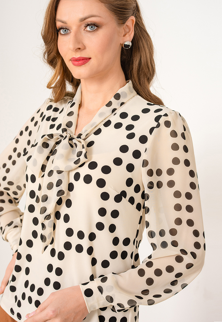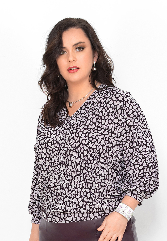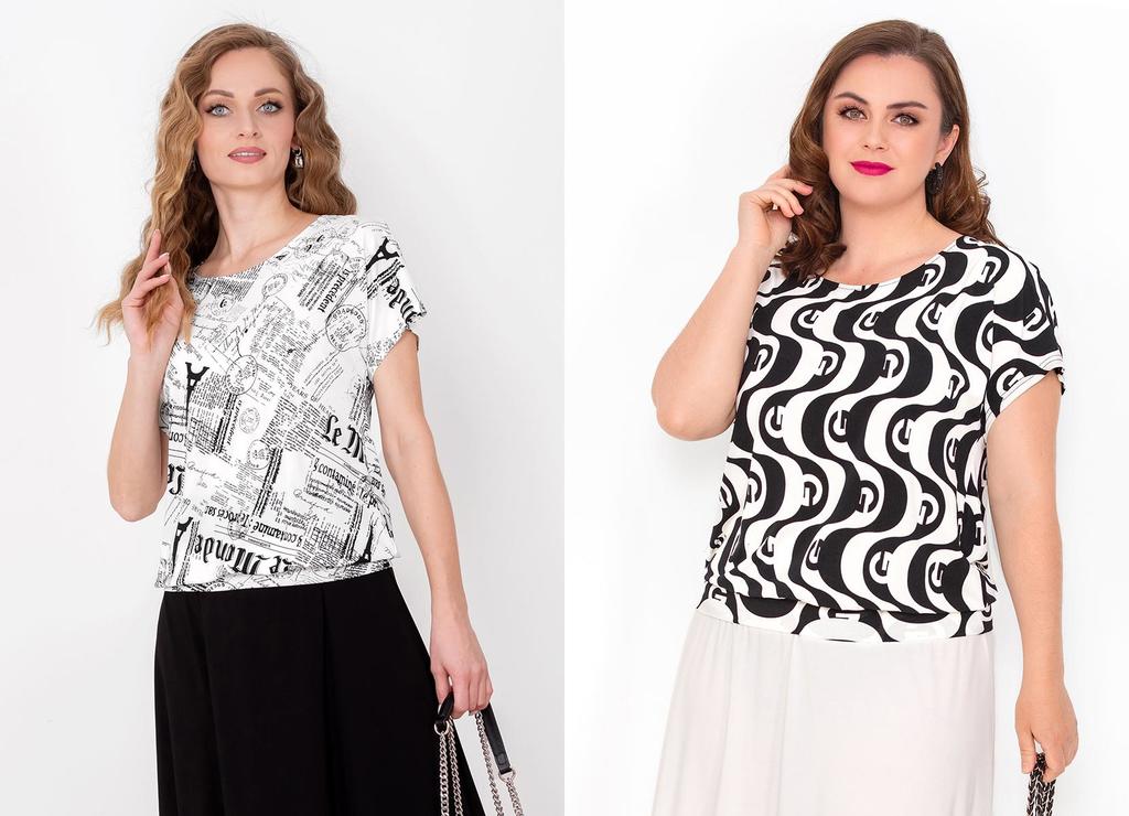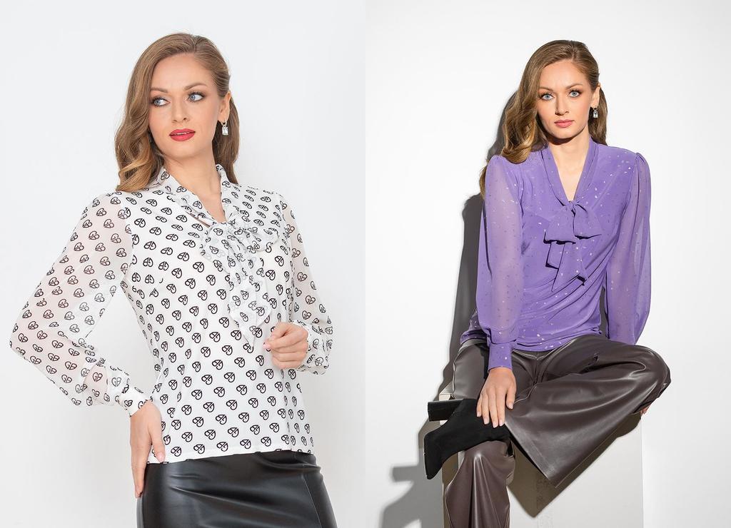 Состав: 92% вискоза, 8% лайкра. Блузка полуприлегающего силуэта с английским воротником. Вытачки убраны в фигурные рельефы. Рукав втачной, длинный, у широкой манжеты присборен и слегка с напуском. Зас ... Показать описаниетёжка на планке с пуговицами. Блузка выполнена из приятного к телу трикотажного полотна (10% натуральная вискоза), рукава выполнены из нежного шифона с тем же рисунком, что и у основной ткани. Длина изделия 58-62 см в зависимости от размера. Подробное описание: https://kontaly.ru/catalog/bluzki/bluzka-viskoza-ofis-2008-bv1/
