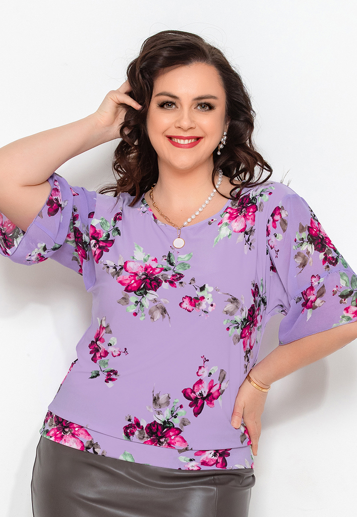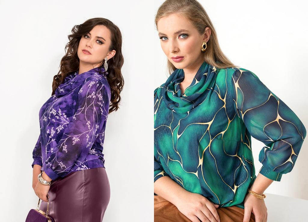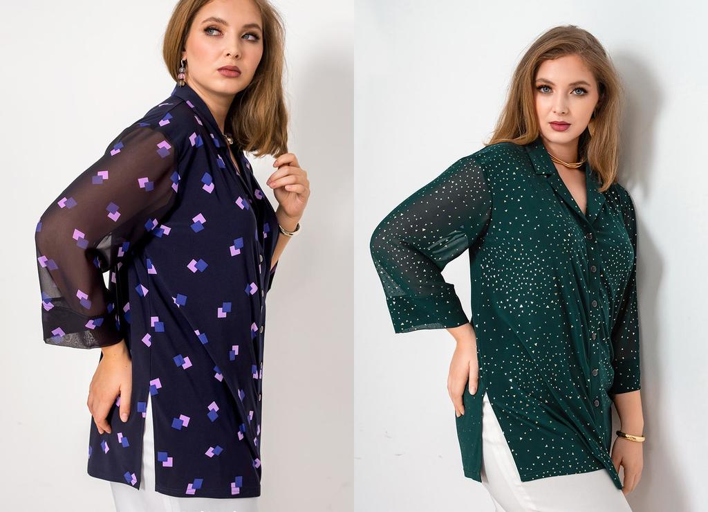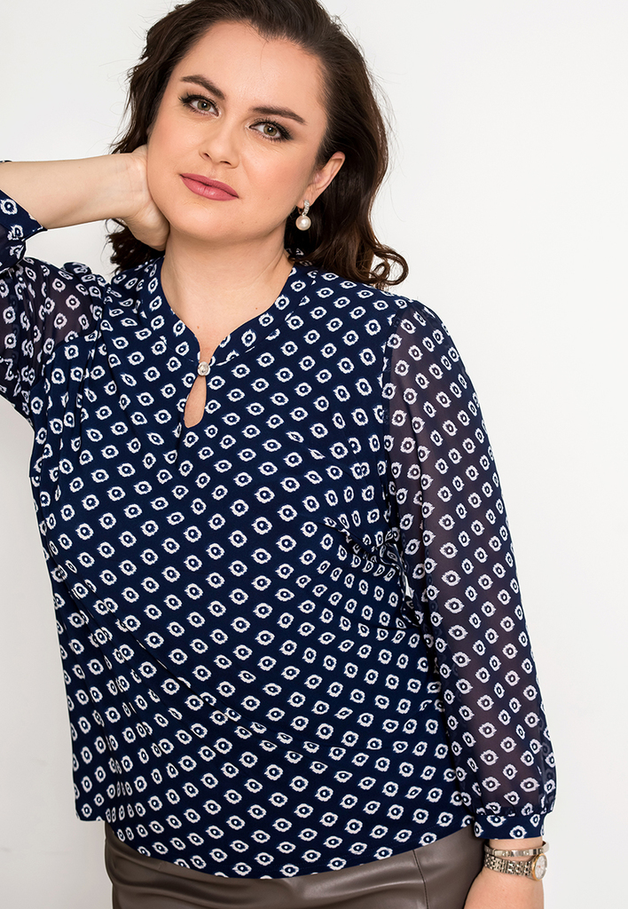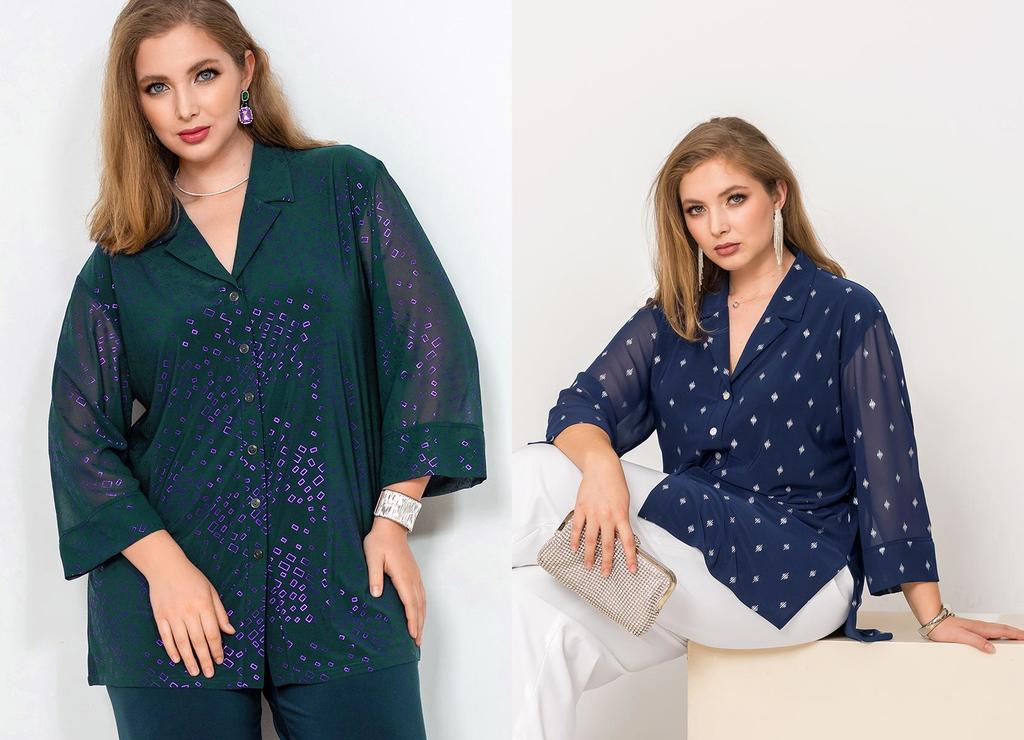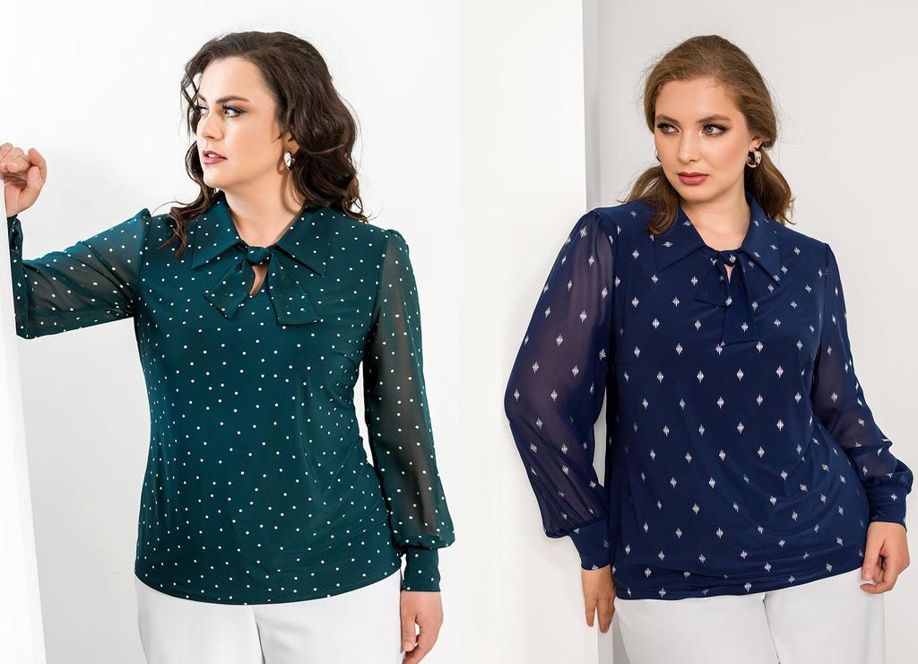 Состав: 35% вискоза, 60% ПЭ, 5% лайкра. Блузка свободного силуэта с разрезами по бокам. Рукав рубашечный (линия плеча приспущена), широкий, длиной 3/4, внизу на манжете. V-образный вырез оформлен англ ... Показать описаниеийским воротником. Застёгивается на пуговицы. Блузка и воротник выполнены из приятного к телу трикотажного полотна, рукава из нежного шифона с тем же рисунком, что и у основной ткани. Длина изделия 76 см для всех размеров. Подробное описание: https://kontaly.ru/catalog/bluzki/bluzka-s-shifonom-zhaklin-2021-bm3/