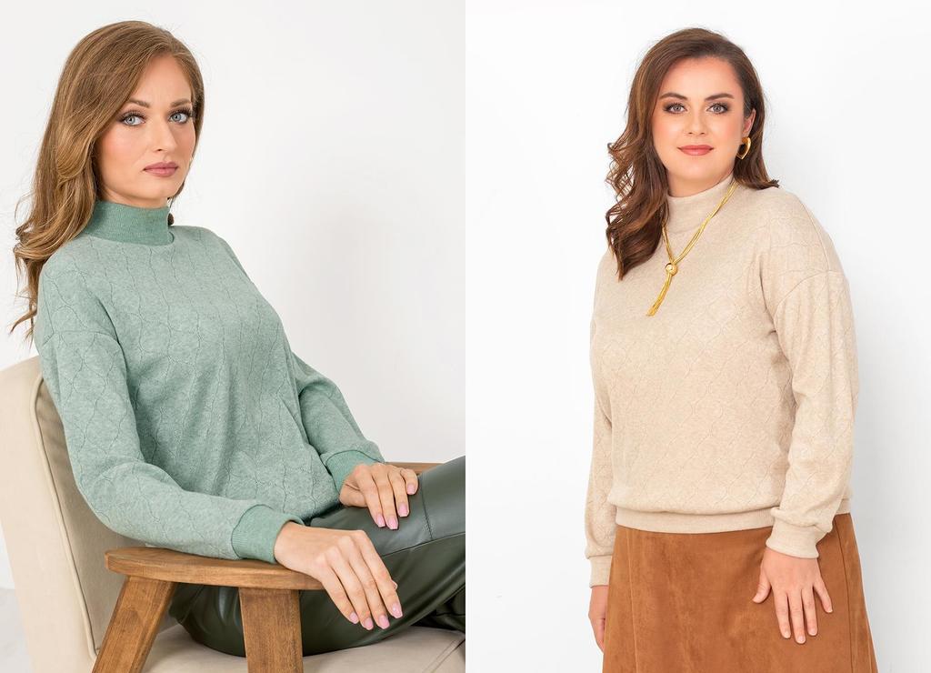 Состав: 65% вискоза, 30% ПЭ, 5% лайкра. Джемпер прямого силуэта. По низу изделия идёт пояс, позволяющий носить джемпер с напуском. Рукав втачной, длинный, довольно свободный, заканчивается широкой ман ... Показать описаниежетой. Горловина круглая, прилегающая к шее, воротник-стойка. Изделие выполнено из приятного к телу тёплого жаккардового полотна. Воротник, манжеты и пояс выполнены из хорошо растягивающегося трикотажного полотна-компаньона в тон изделия. Длина изделия 60-64 см в зависимости от размера. Подробное описание: https://kontaly.ru/catalog/dzhempery/dzhemper-angora-odnot-mira-2020-dsh1/