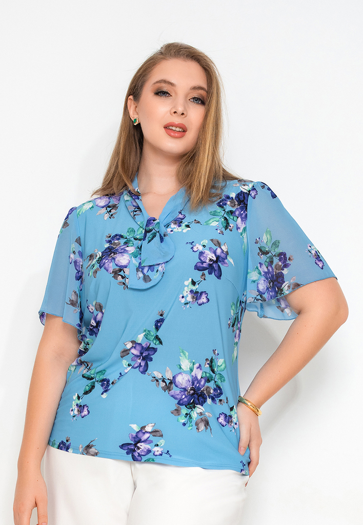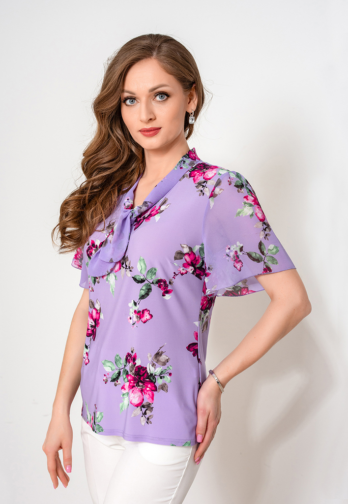 Состав: 35% вискоза, 60% ПЭ, 5% лайкра. Блузка прямого силуэта, на подкладе. Горловина круглая. Рукав втачной, длина 3/4, к низу расширен и украшен разрезом. Низ изделия сделан на ножке, сбоку завязыв ... Показать описаниеается на бантик. Изделие выполнено из нежного приятного к телу шифона с рисунком. Длина изделия 61-65 см в зависимости от размера. Подробное описание: https://kontaly.ru/catalog/bluzki/bluzka-shifon-mayya-1732-bs3-1/