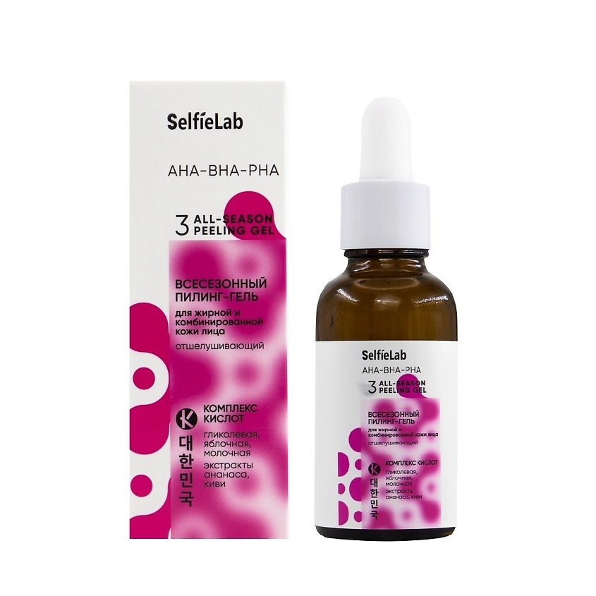 Пилинг с AHA BHA PHA кислотами является третьим этапом в многоступенчатой системе корейского ухода за кожей лица. Компоненты пилинг - геля отшелушивают, выравнивают рельеф кожи, сокращают поры, нормал... Показать описаниеизуют выделения себума, делают ее сияющей и упругой. Кислоты АНА (гликолевая, яблочная, молочная) выравнивают цвет и текстуру кожи, повышают тонус, разглаживают поверхностные морщины. Дополнительные активные компоненты: экстракты ананаса и киви. Производство продукции SelfieLab осуществляется на современном фармацевтическом производстве в Республике. Белорусская косметика это всегда гарантия качества и выбор многих покупателей.