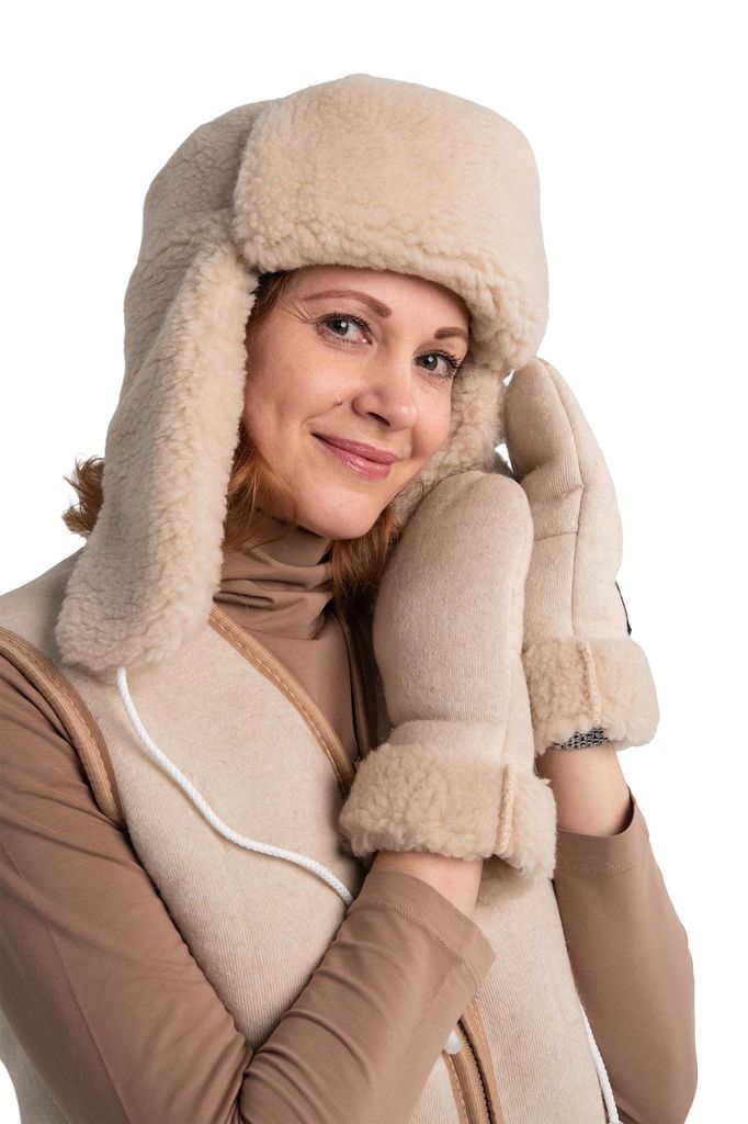 Шапка ушанка из натуральной овечьей шерсти, универсальна для мужчин и женщин, высота ворса 5-7 мм, ветрозащитная подкладка., Шапки из натуральной овечьей шерсти обладают большим набором преимуществ, к... Показать описаниеоторые известны с давних времён., -Тёплая, мягкая меховая основа материала обеспечит надёжную защиту от холода и ветра. Более того, шерсть способна впитывать влагу и не препятствует воздухообмену., -Шерсть не электризуется, является гигроскопичным материалом, а значит волосы даже при длительной носке шапки остаются чистыми и имеют опрятный внешний вид., -Овечья шерсть является самой популярной, к тому же шапки из такого материала можно носить несколько сезонов. В таком головном уборе вам будет комфортно в любую погоду.