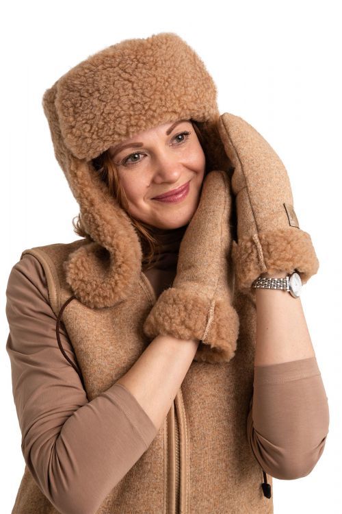 Шапка ушанка из натуральной верблюжьей шерсти, универсальна для мужчин и женщин, высота ворса 5-7 мм, ветрозащитная подкладка., Шапки из натуральной верблюжьей шерсти обладают большим набором преимуще... Показать описаниеств, которые известны с давних времён., -Тёплая, мягкая меховая основа материала обеспечит надёжную защиту от холода и ветра. Более того, шерсть способна впитывать влагу и не препятствует воздухообмену., -Шерсть не электризуется, является гигроскопичным материалом, а значит волосы даже при длительной носке шапки остаются чистыми и имеют опрятный внешний вид., -Верблюжья шерсть является очень популярной, к тому же шапки из такого материала можно носить несколько сезонов. В таком головном уборе вам будет комфортно в любую погоду.