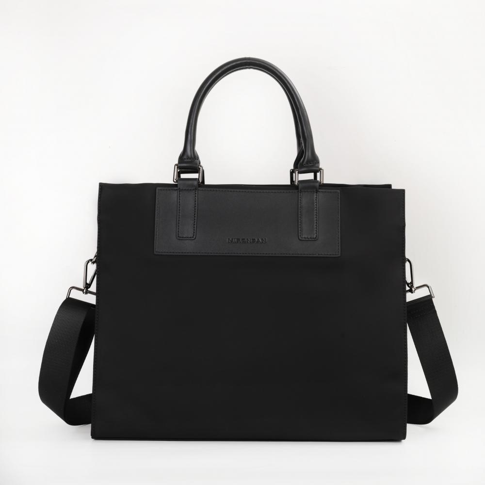 Текстильная сумка MIRONPAN выполнена из высокотехнологичного полиэстера, устойчивого к воздействию влаги и перепаду температур. Он долговечен, практичен и прост в уходе. Основное отделение закрываетс... Показать описаниея на молнию. Внутри 4 кармана для мелочей: 3 открытых и на молнии. Детали отделки – из кожи. На лицевой стороне 2 кармана быстрого доступа на молнии. На тыльной стороне предусмотрен карман быстрого доступа на молнии. Две ручки позволяют комфортно носить аксессуар в руке. Съемный плечевой ремень регулируется по длине, ширина - 3,5 см. Вмещает формат А4 Цвет фурнитуры - серебро. Вес - 850 Размер 38 х 30 х 12 (длина х высота х ширина)
