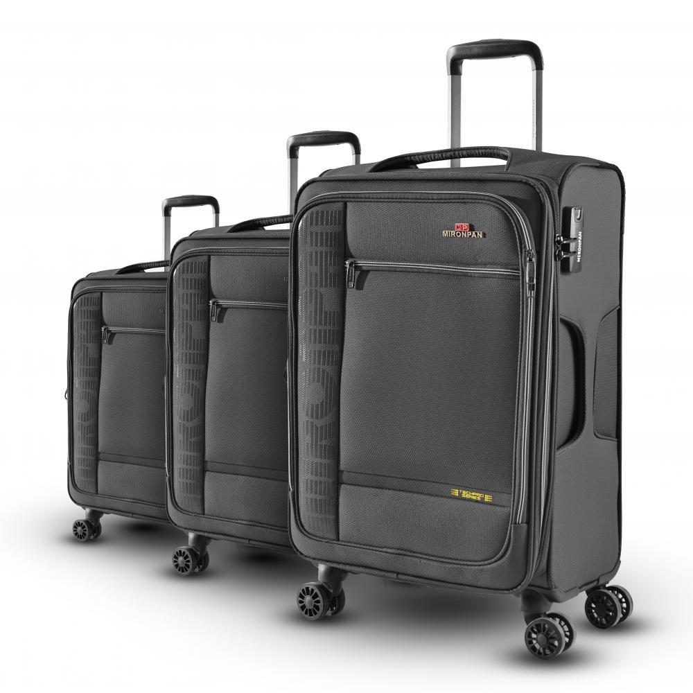 Комплект из 3-х чемоданов MIRONPAN универсальная модель с возможностью увеличения объема. Модель в темно-сером цвете обладает облегченным весом и выполнен из высокотехнологичного полиэстера - совреме... Показать описаниенного прочного материала, для которого характерны отличная износостойкость и влагостойкость. Основное отделение закрывается на молнию с 2 бегунками. Внутри 2 отделения: одно - с ремнями-фиксаторами, другое - с тканевой перегородкой на молнии и вместительным карманом-сеткой на молнии. На лицевой стороне предусмотрено дополнительное отделение и карман закрываются на молнии. Выдвижная ручка фиксируется в 2-х положениях. Сверху и сбоку предусмотрены дополнительные ручки для удобства переноски. 4 двойных колеса несъемные вращаются на 360°, позволяя чемодану двигаться легко и плавно. Чемодан оснащен кодовым замком. Характеристики модели: - объем . L- 98,4 л., M- 59,6 л., S - 37,5 л.; - 2 отделения; - 4-е двойных колеса со свободным вращением на 360°; несъемные - телескопическая ручка (фиксация в 3-х положениях); - кодовый замок; - возможность увеличения объёма. L – ширина - 44 см; высота - 73 см; глубина - 21 см(с расширением 27 см), вес - 3,5 кг; 27 дюйма. M– ширина - 38 см; высота - 64 см; глубина - 19 см (с расширением 22 см), вес – 2,9 кг; 26 дюйма. S – ширина - 32 см; высота - 52 см; глубина - 16 см (с расширением 20 см), вес – 2,5 кг; 23 дюйма.