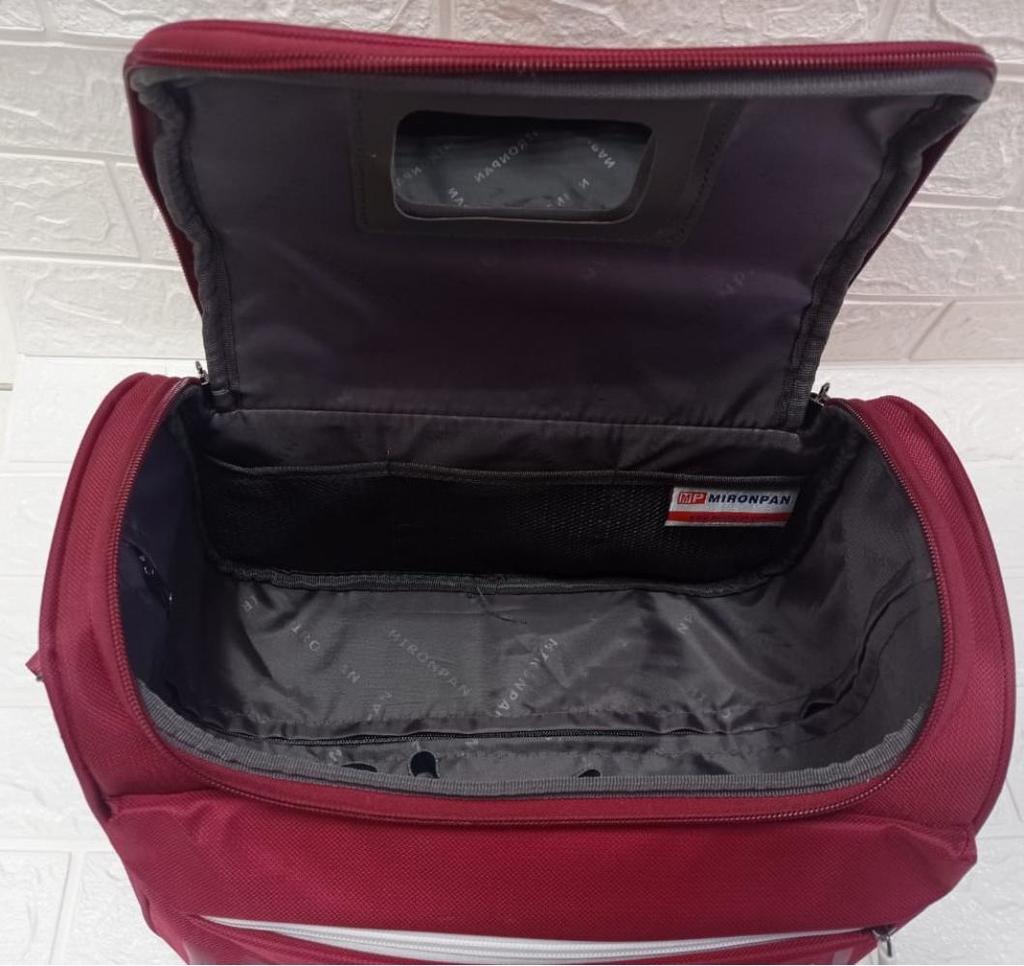 Комплект из 3-х чемоданов MIRONPAN универсальная модель с возможностью увеличения объема. Модель в бордовом цвете обладает облегченным весом и выполнен из высокотехнологичного полиэстера - современно... Показать описаниего прочного материала, для которого характерны отличная износостойкость и влагостойкость. Основное отделение закрывается на молнию с 2 бегунками. Внутри 2 отделения: одно - с ремнями-фиксаторами, другое - с тканевой перегородкой на молнии и вместительным карманом-сеткой на молнии. На лицевой стороне предусмотрено дополнительное отделение и карман закрываются на молнии. Выдвижная ручка фиксируется в 2-х положениях. Сверху и сбоку предусмотрены дополнительные ручки для удобства переноски. 4 двойных колеса несъемные вращаются на 360°, позволяя чемодану двигаться легко и плавно. Чемодан оснащен кодовым замком. Характеристики модели: - объем . L- 146 л., M- 56,2 л.,S - 35,2 л.; - 2 отделения; - 4-е двойных колеса со свободным вращением на 360°,несъмные - телескопическая ручка (фиксация в 3-х положениях); - кодовый замок; - возможность ув L – ширина - 46 см; высота - 77 см; глубина - 23 см(с расширением 28 см), вес - 3,7 кг; M– ширина - 40 см; высота - 67см; глубина - 21 см (с расширением 26 см), вес – 3,2 кг; S – ширина - 35 см; высота - 56см; глубина - 18 см (с расширением 23 см), вес – 2,6 кг;