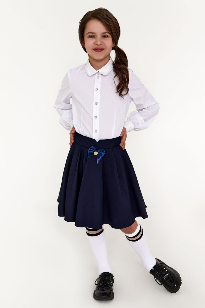Описание Блузка для девочки повседневная, из смесовой ткани. Блузка полуприлегающего силуэта, с центральной застежкой на петли и пуговицы и одну петлю и пуговицу на воротнике. Пуговицы с жемчужинкой, ... Показать описаниекоторые украшают блузку. Перед и спинка с талиевыми вытачками, которые обеспечивают прилегание изделия по фигуре. Рукава втачные одношовные с притачными манжетами, застегивающимися на петлю и пуговицу. По швам притачивания манжет закладывается сборка. Воротник с закругленными углами с отрезной стойкой. По воротнику и манжете настрочено кружево, которое придаёт блузке нарядность. Отличный вариант в школу на каждый день. Параметры Рост: 122, 128, 134, 140, 146, 152 30 (122 см) Блузка: Длина изделия - 45см, Длина рукава - 44см, Обхват шеи - 37см, Ширина плеча - 8см, Ширина по груди - 36см, Ширина по низу - 39см, Ширина рукава - 14см; 30 (128 см) Блузка: Длина изделия - 48см, Длина рукава - 46.5см, Обхват шеи - 37см, Ширина плеча - 8.5см, Ширина по груди - 36см, Ширина по низу - 39см, Ширина рукава - 14см; 32 (134 см) Блузка: Длина изделия - 51см, Длина рукава - 49см, Обхват шеи - 37.5см, Ширина плеча - 9см, Ширина по груди - 38см, Ширина по низу - 41см, Ширина рукава - 14.5см; 34 (140 см) Блузка: Длина изделия - 54см, Длина рукава - 51.5см, Обхват шеи - 38см, Ширина плеча - 9.5см, Ширина по груди - 40см, Ширина по низу - 43см, Ширина рукава - 15см; 36 (146 см) Блузка: Длина изделия - 57см, Длина рукава - 54см, Обхват шеи - 38.5см, Ширина плеча - 10см, Ширина по груди - 42см, Ширина по низу - 45см, Ширина рукава - 15.5см; 38 (152 см) Блузка: Длина изделия - 60см, Длина рукава - 56.5см, Обхват шеи - 39см, Ширина плеча - 10.5см, Ширина по груди - 44см, Ширина по низу - 47см, Ширина рукава - 16см; Состав и уход Состав: Хлопок/cotton 68%; нейлон/nylon 30%; эластан/elastane 2%. Уход: * Стирка при температуре воды до 30°C * Не отбеливать * Гладить при температуре утюга до 110°C * Вертикальная сушка * Барабанная сушка запрещена * Профессиональная сухая чистка в тетрахлорэтилене и во всех растворителях, внесенных в список для символа F.