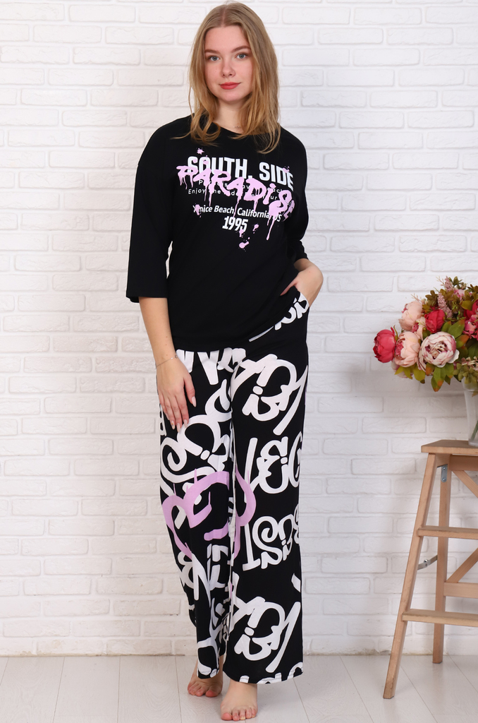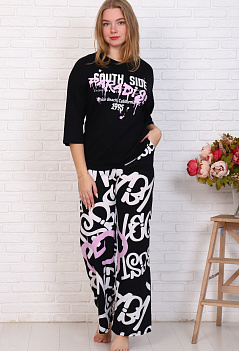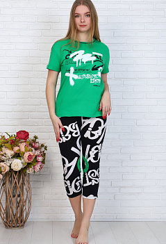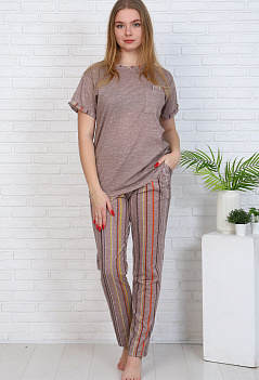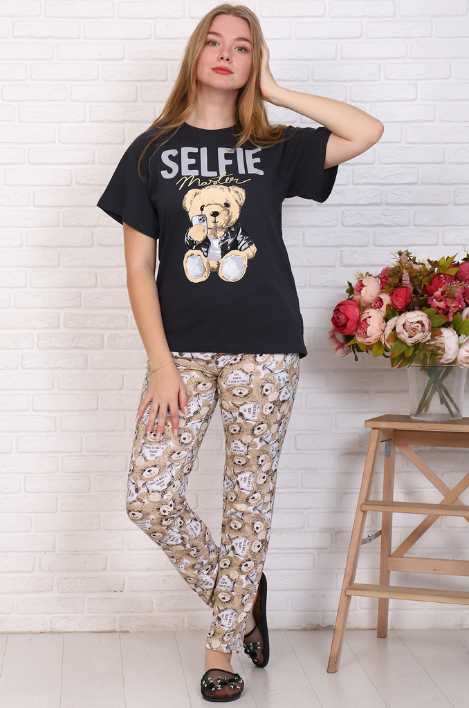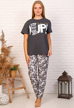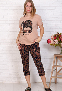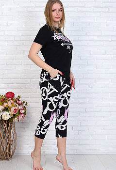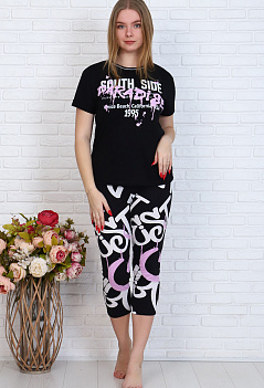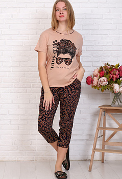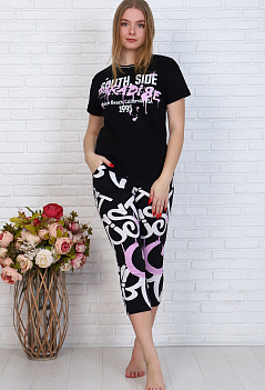 Состав: хлопок 100% Описание: Симпатичный и удобный домашний костюм из качественного кулирного полотна. Футболка с коротким рукавом, на полочке печатный принт. Брюки с боковыми карманами, зауженные кн... Показать описаниеизу, пояс на резинке. Ткань кулирка.