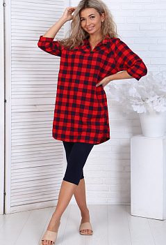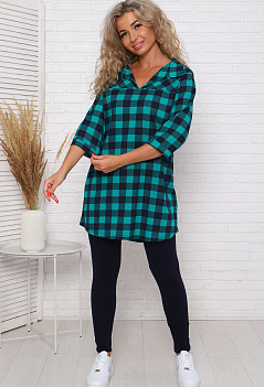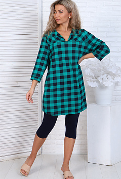 Состав: верх-100%х/б;низ-95%х/б,5%лайкра Описание: Удобный, стильный и невероятно женственный костюм для повседневного образа. Удлинённая туника-рубашка с отрезной кокеткой и отложным воротником. Моде... Показать описаниель с удлинённой спинкой, комфортный рукав 3/4. Леггинсы облегающие, пояс на комфортной, широкой резинке. Ткань: туника - кулирка; леггинсы - кулирка с лайкрой.