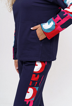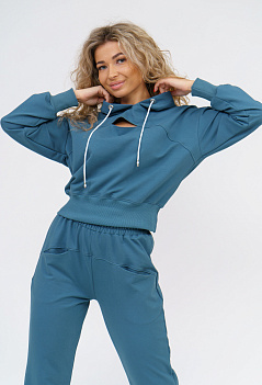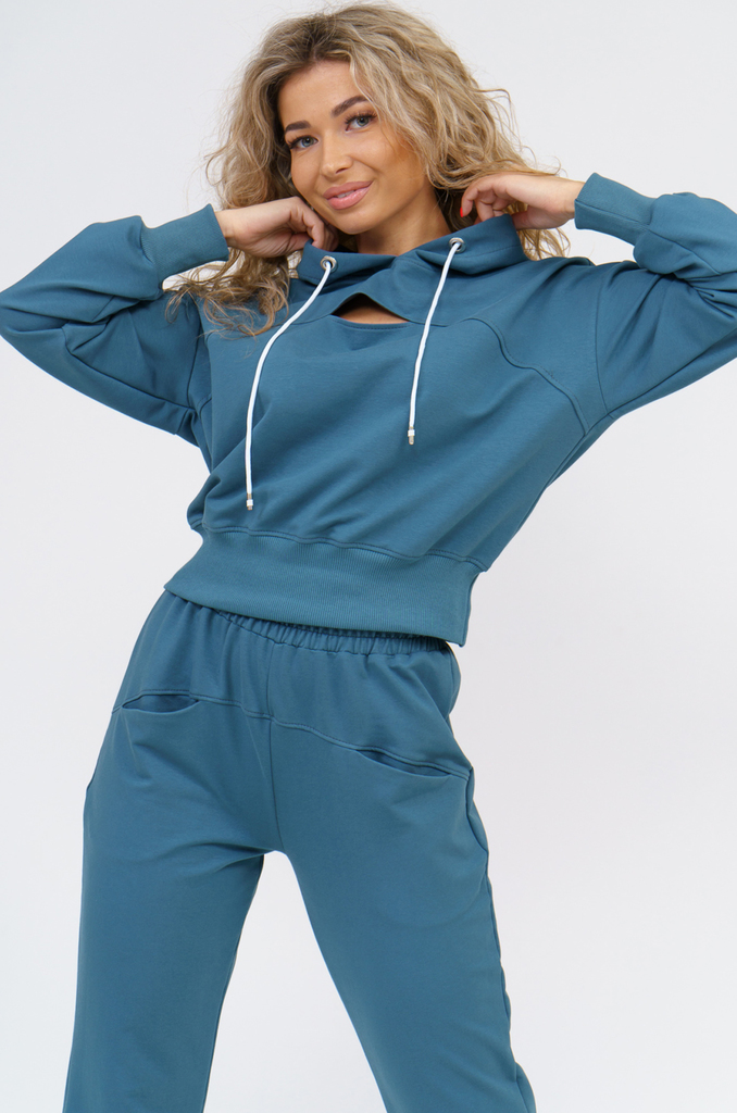 Состав: 72% х/б,20% п/э,8%лайкра Описание: Стильный женский костюм спортивного кроя подойдёт и для дома и для прогулок. Укороченная толстовка с капюшоном подчеркнёт стройность фигуры. Оригинальный эле... Показать описаниемент - небольшой вырез по линии кокетки в области груди. Рукава и нижняя часть толстовки на манжете. Брюки слегка зауженные внизу, на кокетке, с карманами, пояс на широкой резинке. Ткань - практичный петельчатый футер с лайкрой.