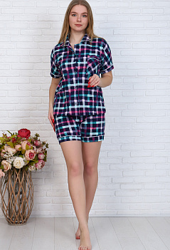 Состав: хлопок 100% Описание: Стильный и удобный хлопковый костюм для домашнего отдыха. Рубашка с коротким рукавом, застёжка - пуговицы. Модель свободного прямого кроя, с отложным воротником и накладн... Показать описаниеым кармашком. Шортики с высокой посадкой, пояс на резинке. Ткань кулирка. Наличие расцветок уточняйте у менеджера.