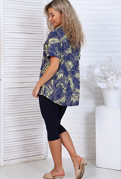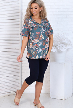 Состав: верх-100%х/б;низ-95%х/б,5%лайкра Описание: Удобный, стильный и невероятно женственный костюм для повседневного образа. Удлинённая туника-рубашка с отрезной кокеткой и отложным воротником. Моде... Показать описаниель с удлинённой спинкой, комфортный рукав 3/4. Бриджи облегающие, длина ниже колена, пояс на резинке. Ткань: туника - кулирка; бриджи - кулирка с лайкрой.