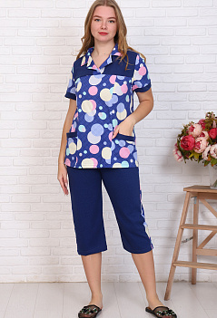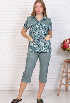 Состав: хлопок 100% Описание: Очень удобный хлопковый костюм с бриджами. Модель универсальная, подойдёт как для домашних дел, так и для уличный прогулок. Футболка прямая, "рубашечного кроя" с воротник... Показать описаниеом, с отрезной кокеткой и накладными карманами. Бриджи комфортной длины, с боковыми вставками, пояс на эластичной резинке. Ткань кулирка - мягкая и приятная к телу.