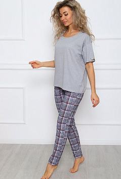 Костюм "Евгения", леггинсы (клетка синяя) Вопросы по товару