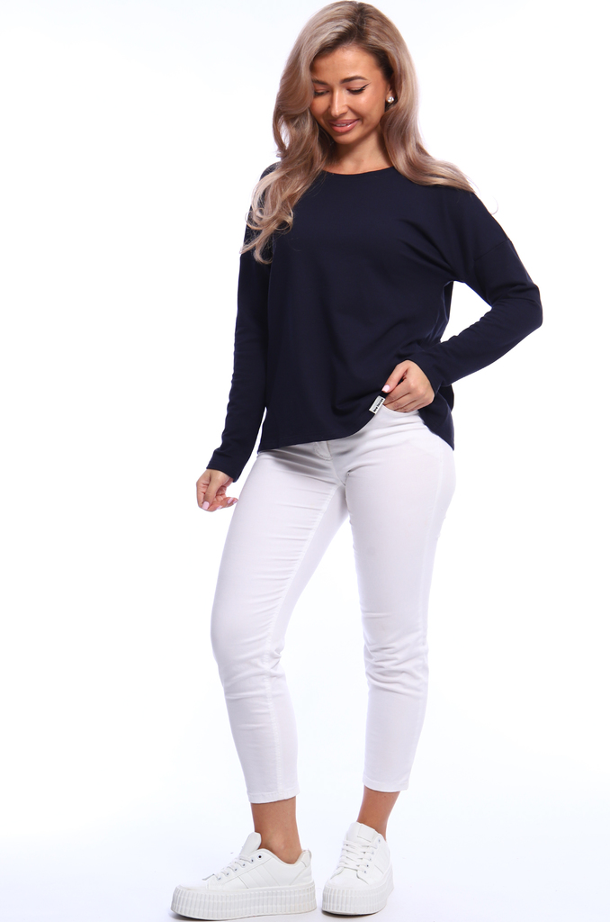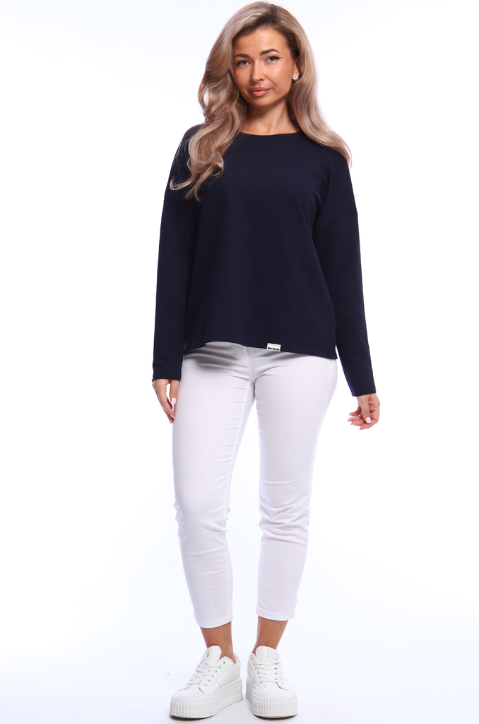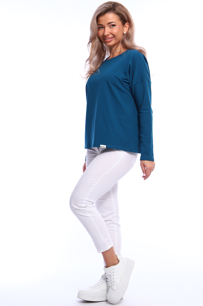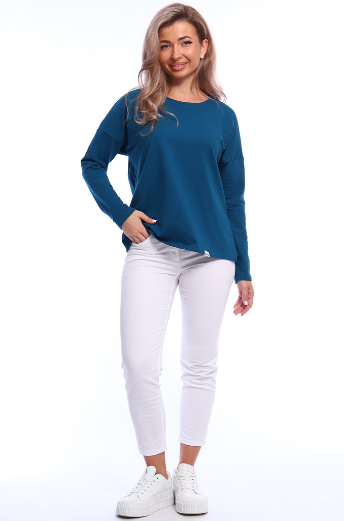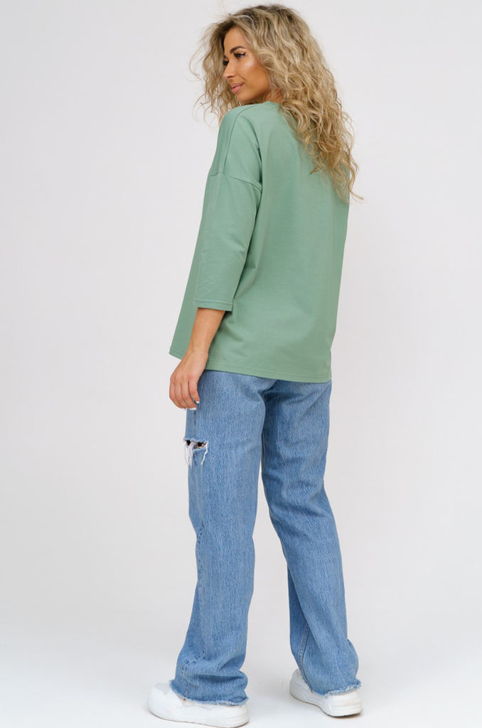 Состав: хлопок 100% Описание: Женский лонгслив с рукавом 3/4 прекрасный вариант на прохладное время года. Модель прямого кроя со спущенным плечом. Спинка удлиненная, по бокам разрезы. Ткань - кулирка.