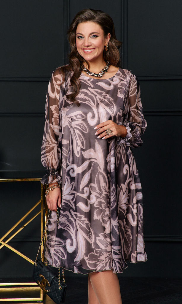Состав: Платье: ПЭ-100%; Подкладка: ПЭ-100%; Платье трапециевидного силуэта с дизайнерским цветочным принтом, который создаёт игривое настроение за счёт лёгкости ткани и силуэта модели. Платье с округ... Показать описаниелой горловиной, нагрудными вытачками, перед и спинка платья на подкладке. Рукав втачной одношовный, длинный со сборкой на венгерку и рюшей. Длина платья от высшей точки плечевого шва до низа 108 см (р 50-54), 109 см (р 56-60). Длина рукава 66 см. платье 50 52 54 56 58 60 обхват груди 110 114 118 122 126 130 обхват талии обхват бедер 140 144 148 152 156 160 ширина рукава вверху 46 48 50 52 56 58