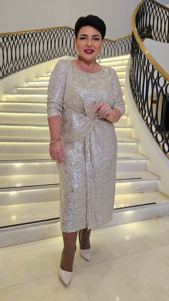 Состав: Платье: ПЭ-97%; Спандекс-3%; Подкладка: ПЭ-100%; Платье с пайетками, мерцающими на свету, создает завораживающий эффект! Пайетки позволяют своей обладательнице выделиться из толпы, привлечь во... Показать описаниесхищенные взгляды и быть в центре внимания на любом мероприятии. А трендовый декоративный узел по линии талии подходит для любой фигуры и создает изящный силуэт. В таком платье вы будете чувствовать себя уверенно и неповторимо. Платье длины миди прилегающего силуэта с круглой горловиной и втачными рукавами длиной 3/4. По переду платье украшает драпировка в виде декоративного узла. На юбке - имитация запаха. Длина платья от высшей точки плечевого шва до низа – 113 см (р.48-52)-114 см (р.54-58). Длина рукава - 46 см. платье 48 50 52 54 56 58 обхват груди 96 100 104 108 112 116 обхват талии обхват бедер 102 106 110 114 118 122
