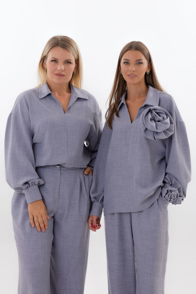 Состав: Вискоза-100%; Блуза оверсайз из вискозы со съемным цветком Kivvi Wear — Воздушная Эстетика Позвольте себе роскошь движения и легкости. Блуза оверсайз из вискозы от Kivvi Wear — это воплощение ... Показать описаниевоздушной элегантности и современного кроя. Модель прямого силуэта, выполненная из струящейся ткани с визуально жатым эффектом, создает утонченный образ, полный тактильного и визуального удовольствия. Широкие рукава, собранные на изящные манжеты, и классический отложной воротник придают образу ретро-флер и благородную строгость. В то же время глубокий вырез по переду мягко балансирует этот объем, добавляя женственности и открытости. Главная особенность этой блузы — съемный декоративный элемент: ниспадающий цветок, который становится живым акцентом всего образа. Его можно носить, позволяя ему струиться ниже линии пояса, создавая романтичный силуэт, или снять для более лаконичного и строгого стиля. Эта блуза — идеальный вариант для создания многогранного образа. Наденьте ее с брюками-клеш для эффектного выхода или с джинсами для повседневного шика. Нежная вискоза с жатым эффектом не требует глажки и дарит коже исключительный комфорт. Рост 164-170 Правила стирки: только деликатная стирка 30 градусов, не использовать отбеливатели, изделие вывернуть наизнанку