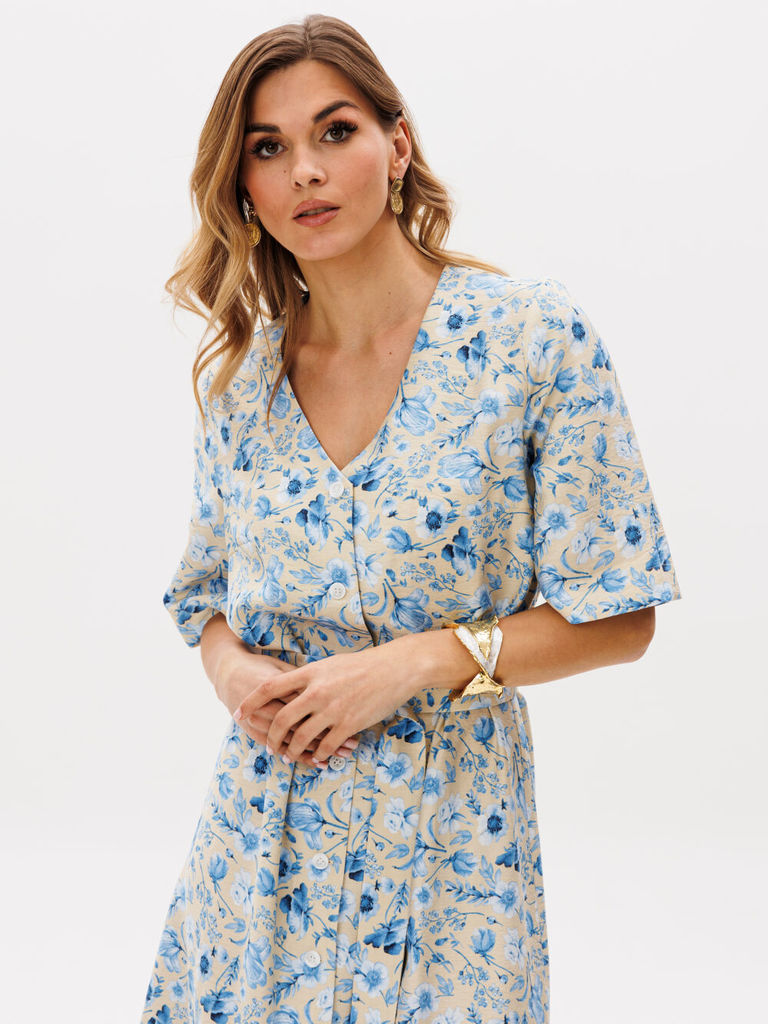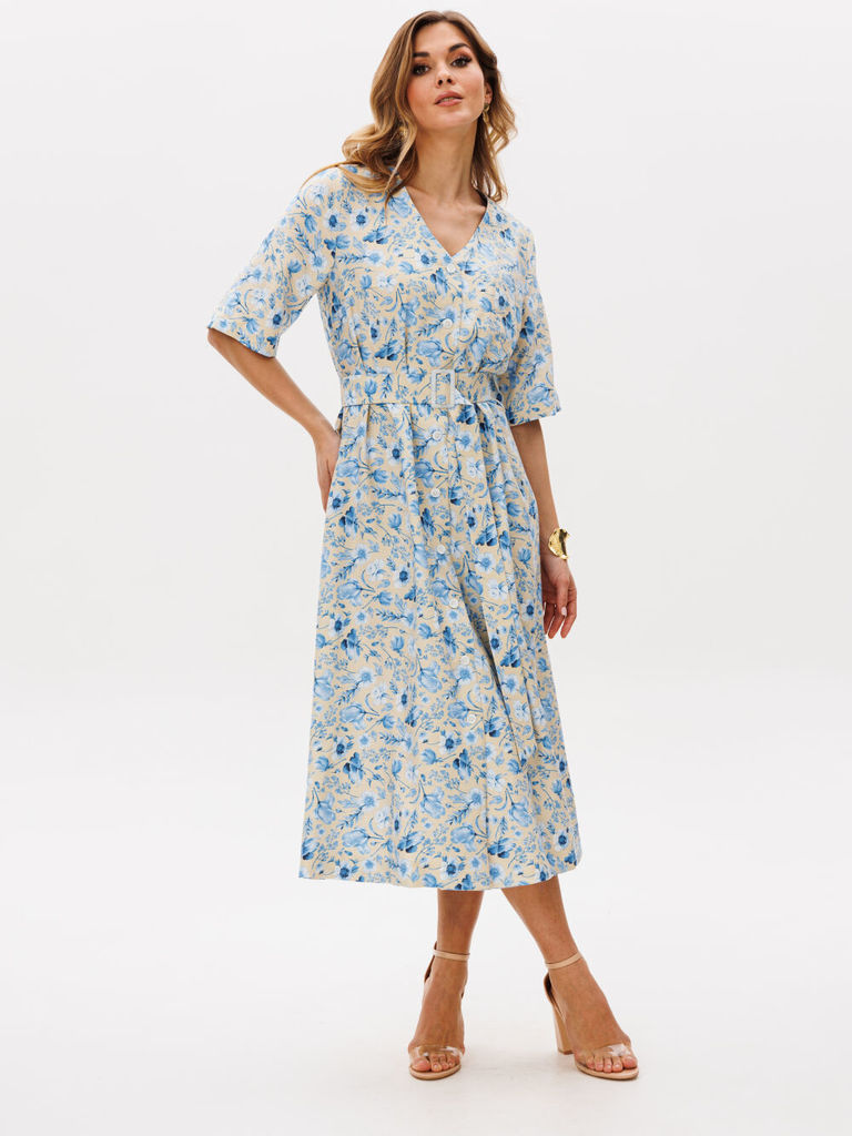 Состав: Вискоза-90%; ПЭ-10%; Сезон: Весна Рост: 164 Страна бренда: Беларусь Состав: Вискоза-90%; ПЭ-10%; Платье А-образного силуэта из летней плательной ткани. Перед с нагрудными вытачками. Застежка ц... Показать описаниеентральная на петли и пуговицы. Рукав втачной одношовный. Горловина V-образной формы. К платью прилагается пояс из основной ткани с пластиковой пряжкой. Фурнитура может быть изменена с сохранением художественного образа. Длина платья - 125 см, длина рукава платья - 34 см.