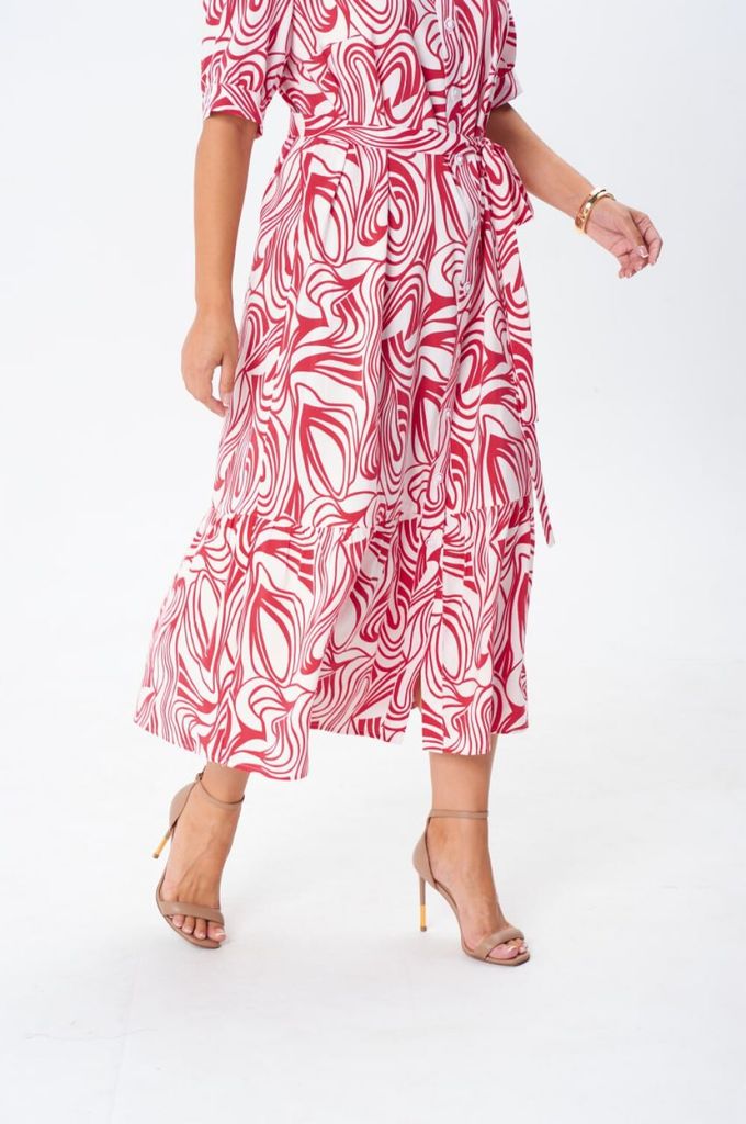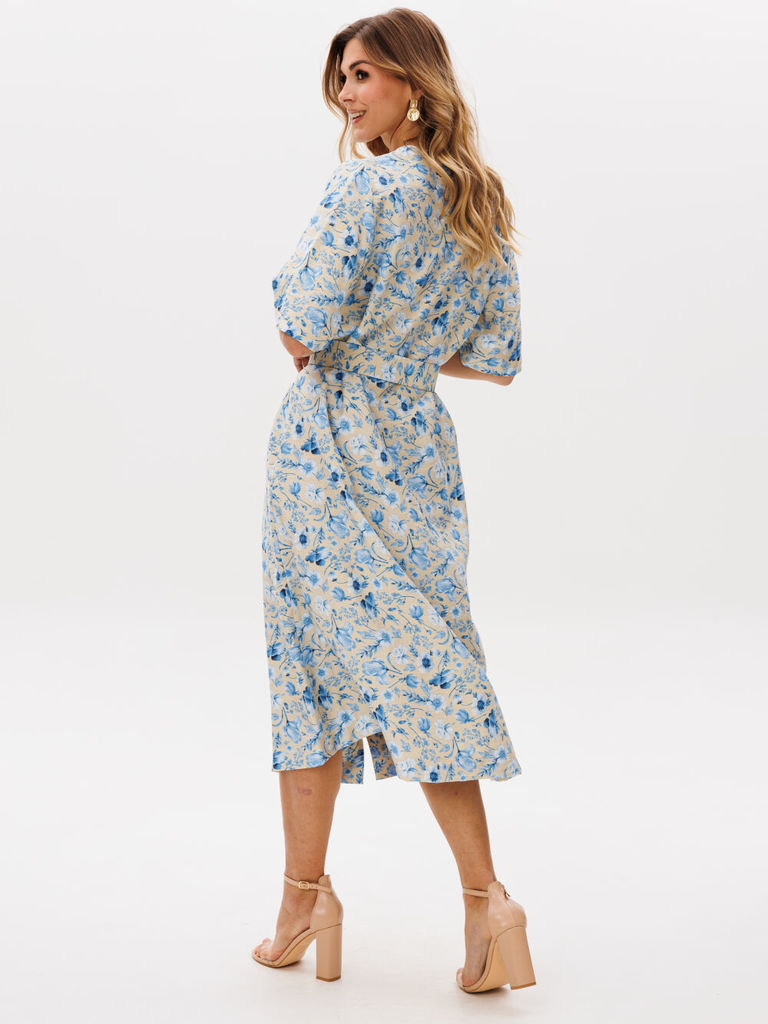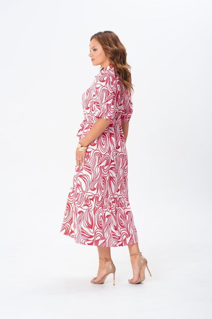 Состав: Вискоза-66%; Спандекс-5%; Нейлон-29%; Сезон: Лето Рост: 164 Страна бренда: Беларусь Состав: Вискоза-66%; Спандекс-5%; Нейлон-29%; Платье А-образного силуэта выполнено из вискозной ткани с летн... Показать описаниеим принтом. Платье с рубашечным воротником и центральной застежкой на петли и пуговиц. Перед с нагрудной вытачкой. Рукав втачной одношовный с притачной манжетой на петлю и пуговицу. По линии притачивания - сборка. По низу платья притачан волан со сборкой. К платью прилагается съемный пояс из основной ткани. Длина платья по спинке- 127 см, длина рукава- 29 см.