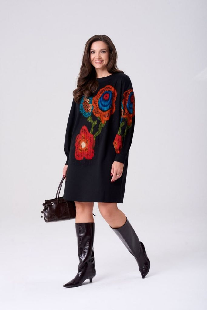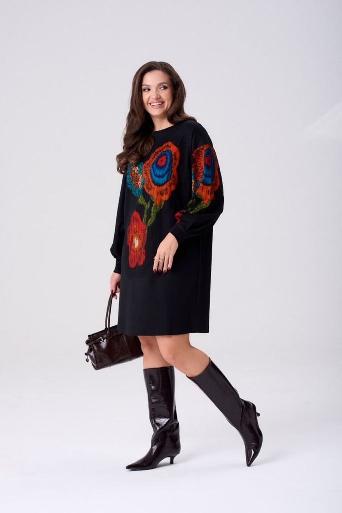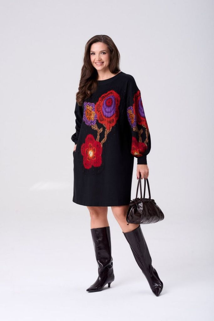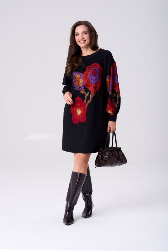 Состав: ПЭ-96%; Спандекс-4%; Сезон: Осень-Зима Рост: 164 Страна бренда: Беларусь Состав: ПЭ-96%; Спандекс-4%; Платье свободного силуэта из трикотажной ткани с принтом. Рукав втачной одношовный со скла... Показать описаниедками по низу и манжетой. В боковых швах карманы. Горловина обработана планкой в форме лодочки. По переду и по левому рукаву поверх принта настрочена сетка. Сетка может быть заменена с сохранением художественного образа изделия. Длина платья - 93 см , длина рукава платья - 53 см.