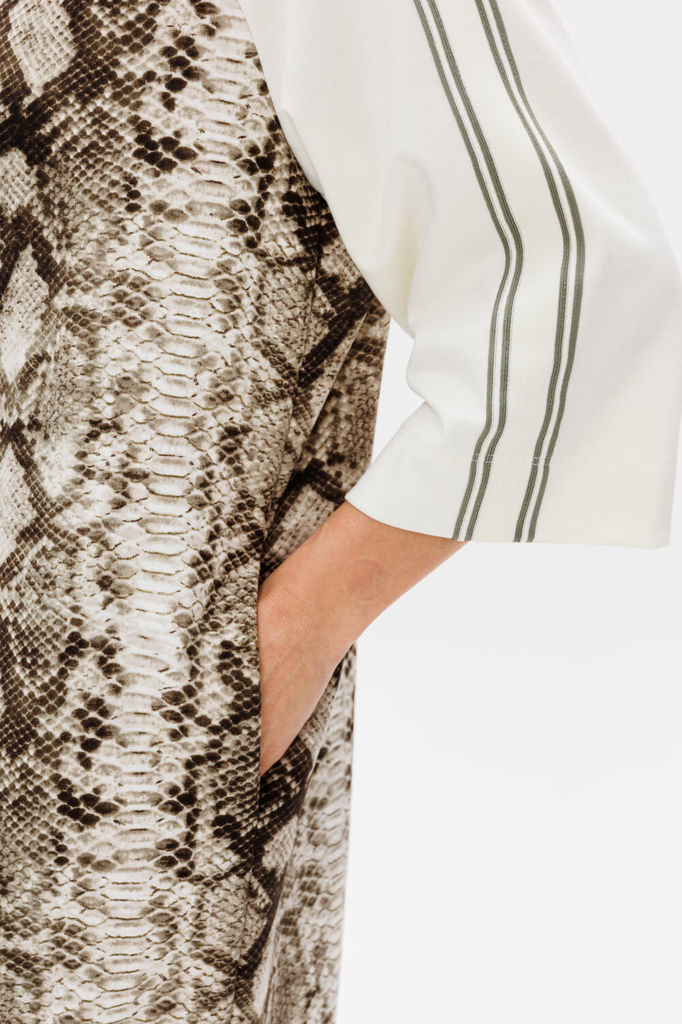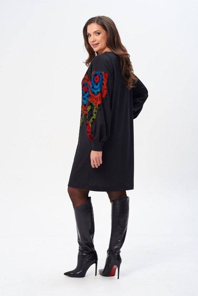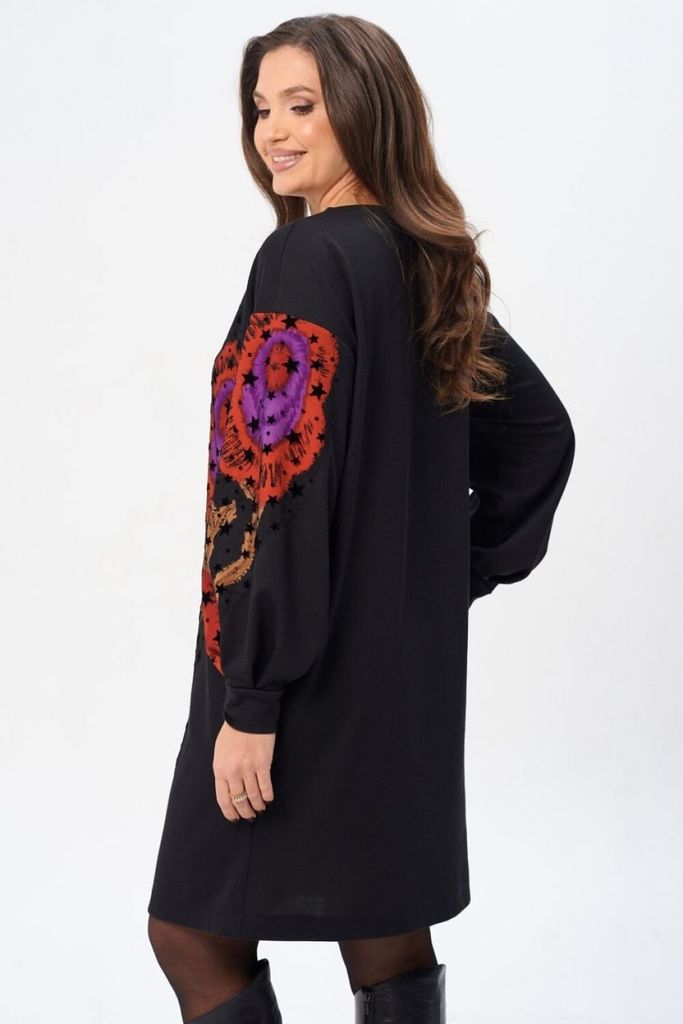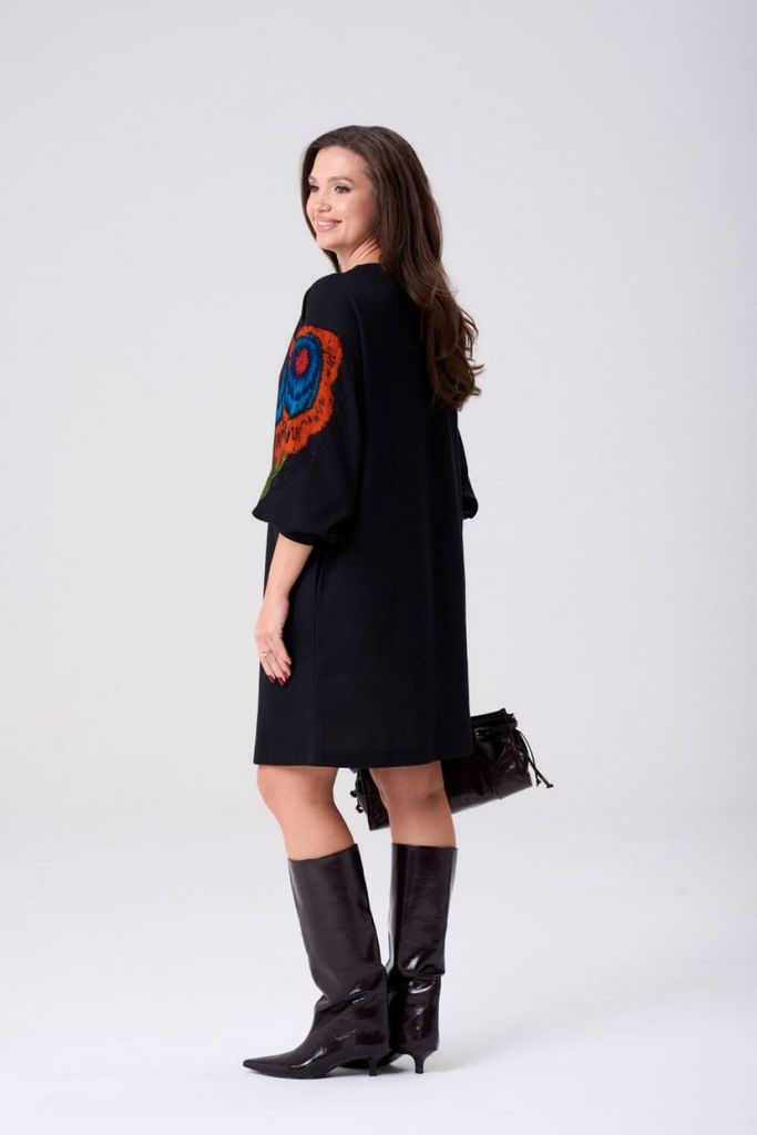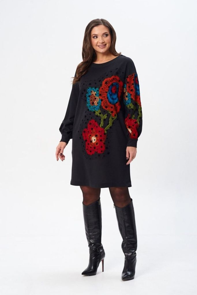Состав: ПЭ-96%; Спандекс-4%; Сезон: Осень-Зима Рост: 164 Страна бренда: Беларусь Состав: ПЭ-96%; Спандекс-4%; Платье свободного силуэта из трикотажной ткани с принтом. Рукав втачной одношовный со скла... Показать описаниедками по низу и манжетой. В боковых швах карманы. Горловина обработана планкой в форме лодочки. По переду и по левому рукаву поверх принта настрочена сетка. Сетка может быть заменена с сохранением художественного образа изделия. Длина платья - 93 см , длина рукава платья - 53 см.