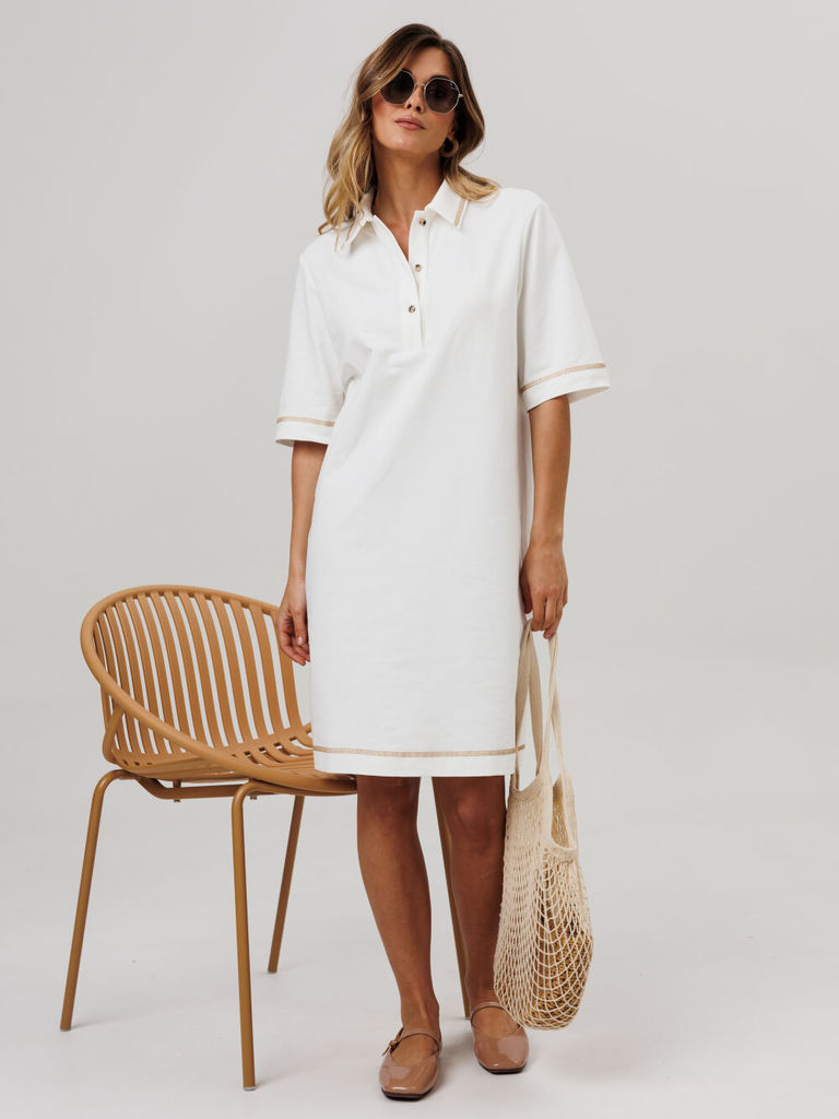 Состав: Вискоза-32%; ПЭ-62%; Спандекс-6%; Сезон: Лето Рост: 164 Страна бренда: Беларусь Состав: Вискоза-32%; ПЭ-62%; Спандекс-6%; Платье прямого силуэта с воротником поло. Рукав втачной одношовный. По... Показать описание низу изделия, по низу рукава и по воротнику проложена отделочная строчка. Длина платья - 97 см, длина рукава - 30 см