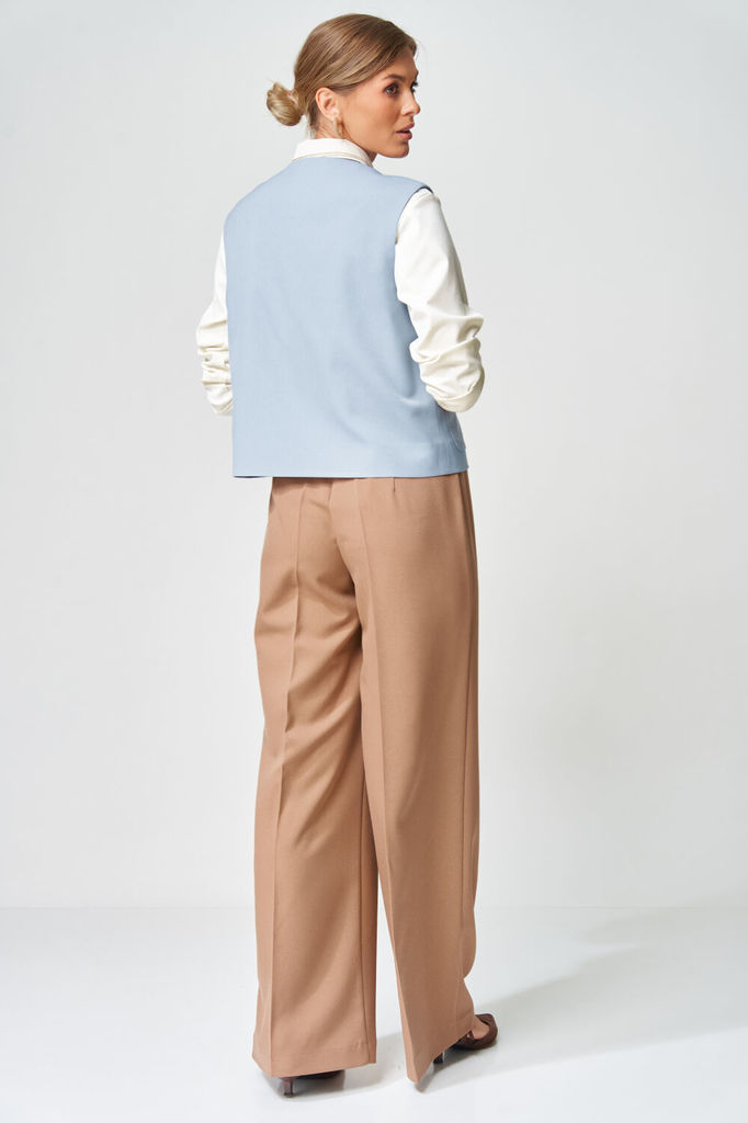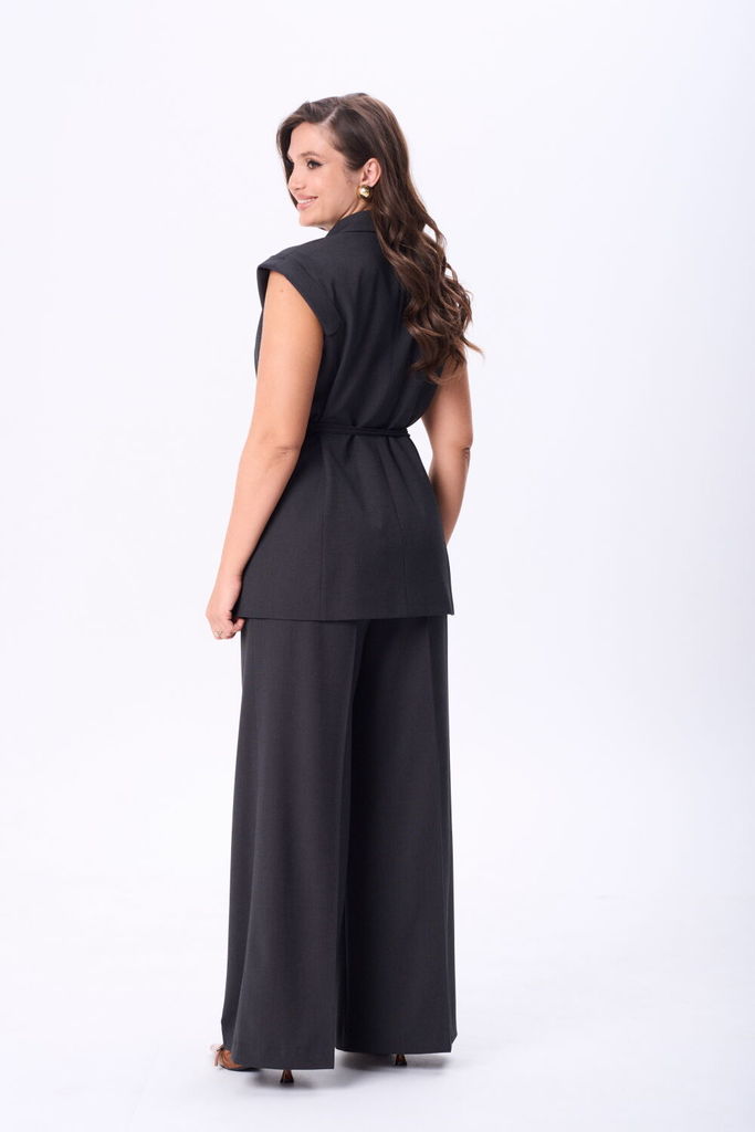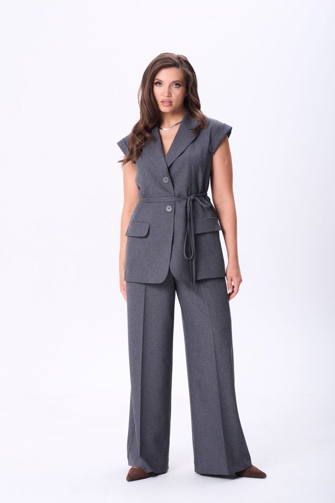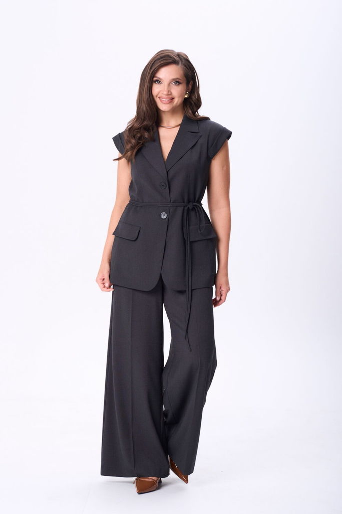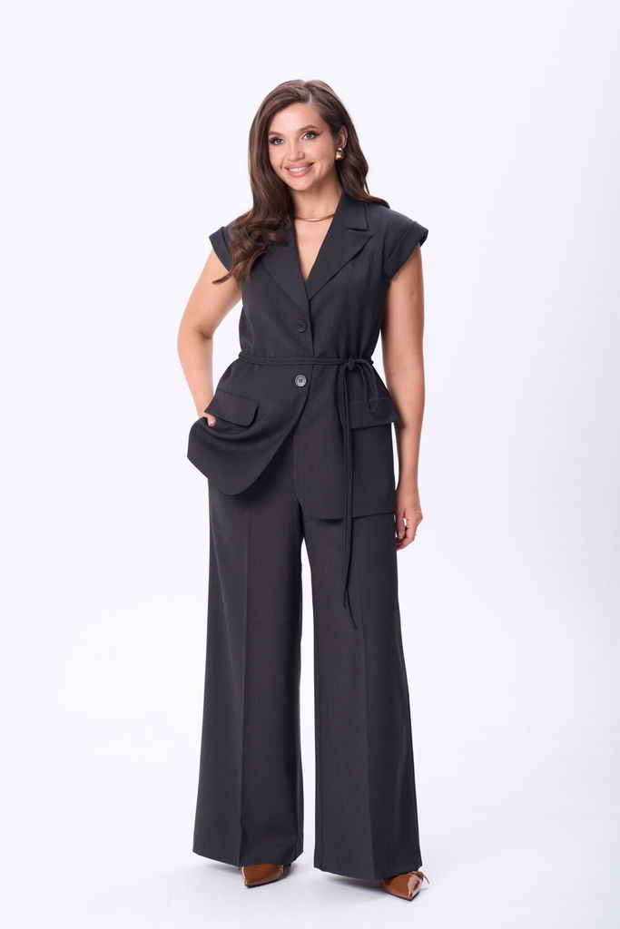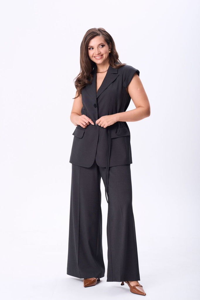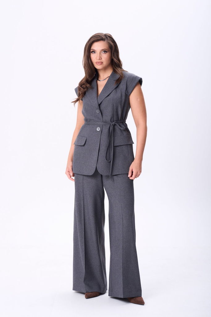 Состав: Вискоза-32%; ПЭ-65%; Спандекс-3%; Сезон: Осень-Зима Рост: 170 Страна бренда: Беларусь Состав: Вискоза-32%; ПЭ-65%; Спандекс-3%; Костюм состоит из жилета и брюк, выполеных из костюмной ткани. Ж... Показать описаниеилет полуприлегающего силуэта с воротником пиджачного типа. Перед с рельефами, талиевой вытачкой и декоративным клапаном. Застежка центральная однобортная на 2 петли и пуговицы. Спинка со средним швом и рельефами. Вдоль оката рукава выполнена декоративная планка. К жилету прилагается тонкий пояс из основной ткани. Брюки расширеные книзу с притачным поясом. Спереди застежка гульфик на молнии и с петлей и пуговицей по поясу. По задней частям брюк вытачки. В боковых швах карманы с наклонным входом. По поясу широкие шлевки. Брюки со срелками застроченными по переду и заутюженными сзади. Длина жилета - 71 см, длина брюк с учетом пояса - 109 см.