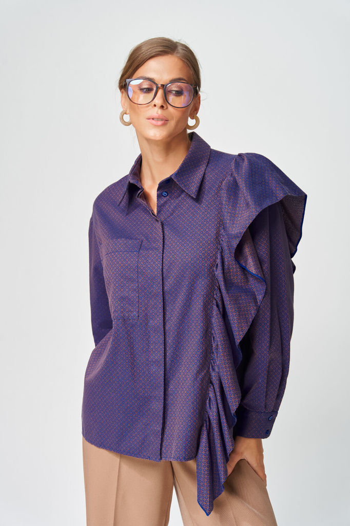 Состав: Хлопок-100%; Сезон: Осень-Зима Рост: 170 Страна бренда: Беларусь Состав: Хлопок-100%; Рубашка прямого силуэта выполнена из хлопковой ткани с оригинальным жаккардовым переплетением. Перед с цен... Показать описаниетральной застежкой потайной планкой. Левая часть переда и спинка с воланом на сборке вставленном в рельеф. На правой части переда настрочен карман. Рукав втачной одношовный с манжетой по низу, на манжете застежка на 2 петли и пуговицы. Воротник отложной со стойкой. Длина рубашки - 65 см, длина рукавав рубашки - 53 см. Данная модель прекрасно сочетается с другими моделями из нашей коллекции 35204. Создайте гармоничный образ, комбинируя эти изделия!