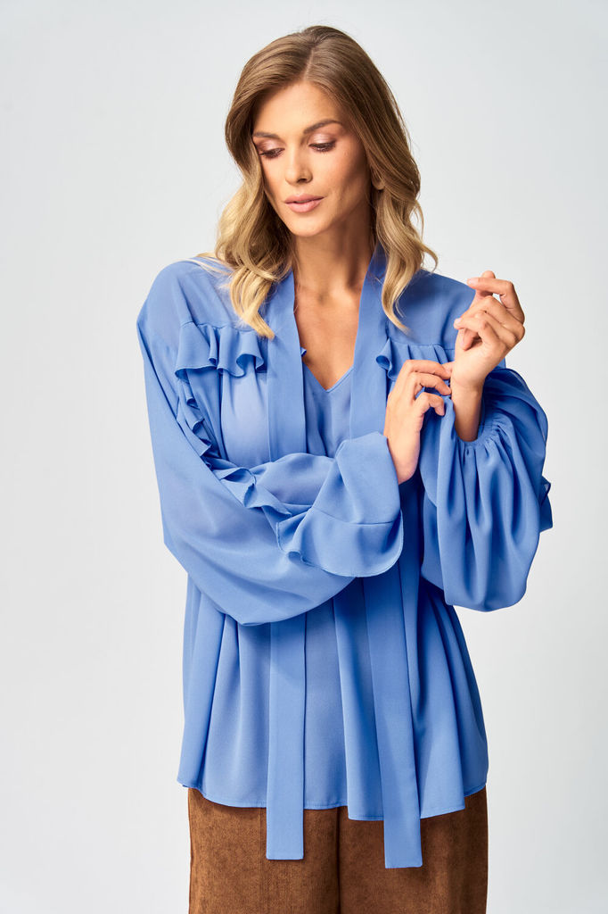 Состав: ПЭ-100%; Сезон: Осень-Зима Рост: 170 Страна бренда: Беларусь Состав: ПЭ-100%; Блузка свободного силуэта из струящейся шифоновой ткани. Перед и спинка с кокеткой и сборкой. Рукав спущенный своб... Показать описаниеодный с резинкой понизу. Вдоль линии кокетки и рукава вставлена рюша. Горловина V-образной формы с воротником стойкой переходящей в бант. Длина блузки - 67 см, длина рукава - 60 см. Обратите внимание! Данная модель прекрасно сочетается с другими моделями из нашей коллекции 35204 и 15377 в коричневом цвете. Создайте гармоничный образ, комбинируя эти изделия!