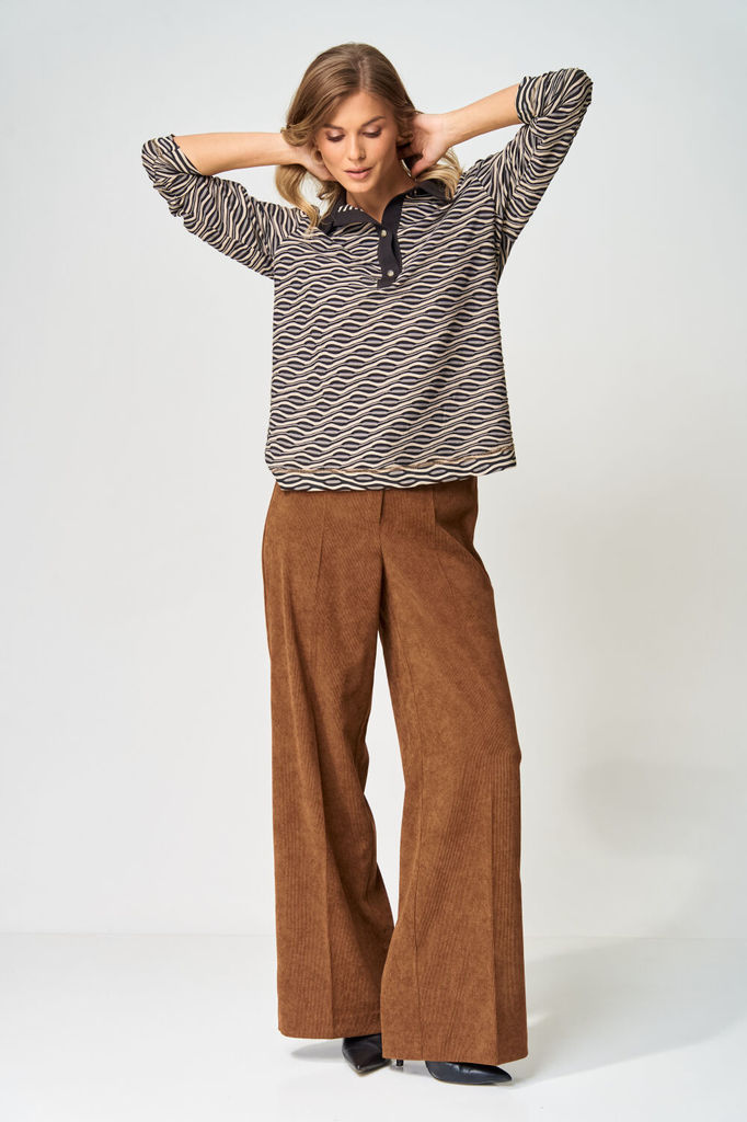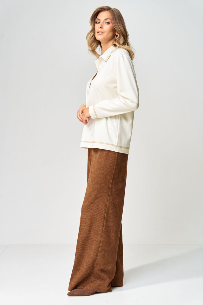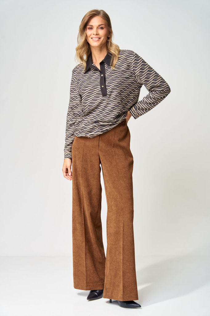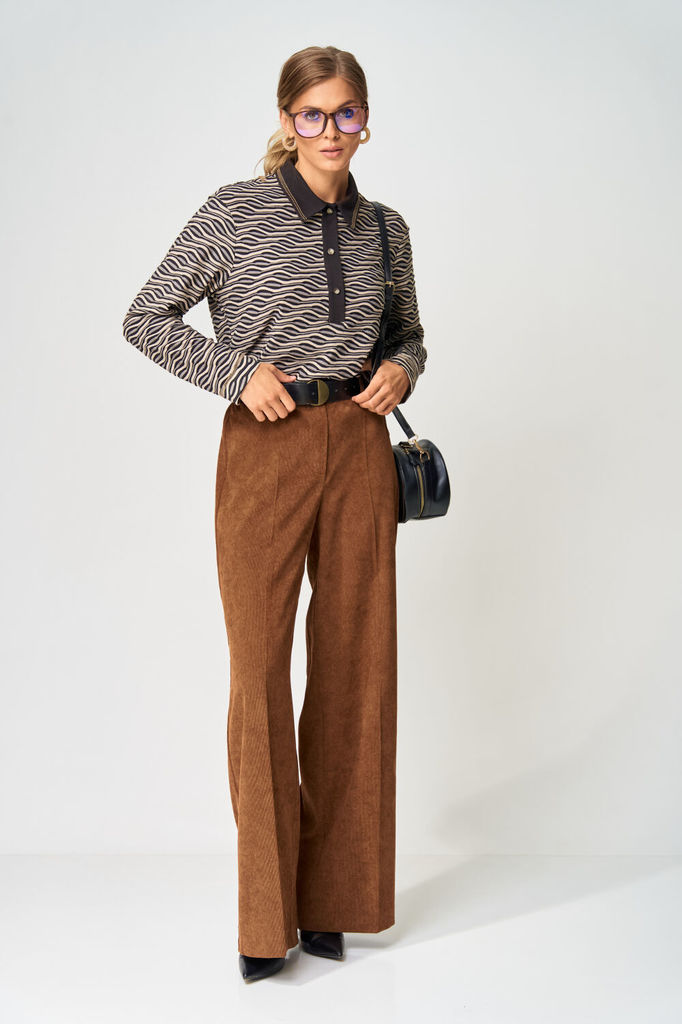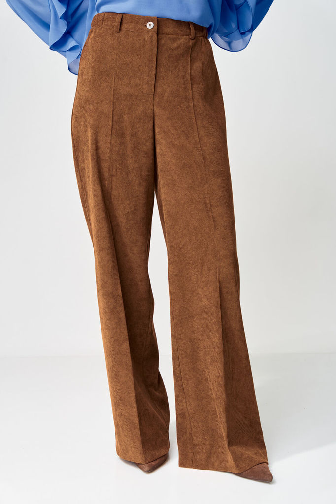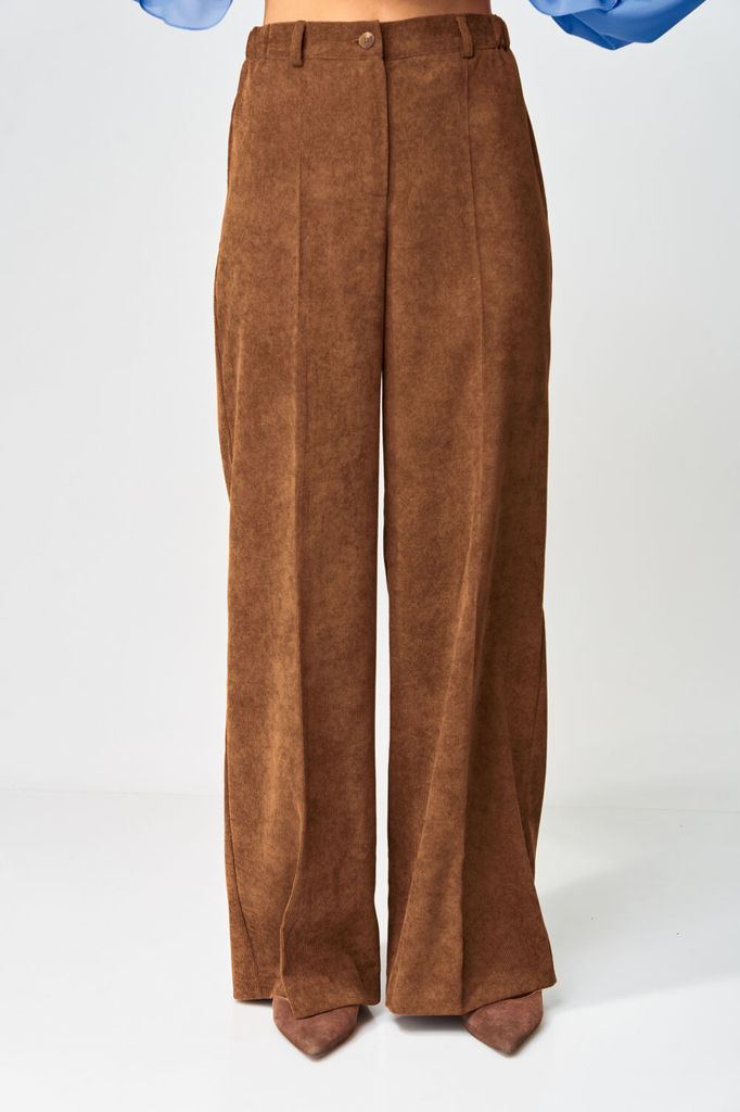 Состав: ПЭ-100%; Сезон: Осень-Зима Рост: 170 Страна бренда: Беларусь Состав: ПЭ-100%; Брюки палаццо с притачным поясом из мягкой вельветовой ткани. Спереди застежка гульфик на молнии и петлей и пугови... Показать описаниецей по поясу. По задней частям брюк вытачки. Пояс с резинкой в боковых частях. Брюки с заутюженными стрелками. Длина брюк с учетом пояса - 109 см. Данная модель прекрасно сочетается с другими моделями из нашей коллекции 15410,15377,15409,15416. Создайте гармоничный образ, комбинируя эти изделия!