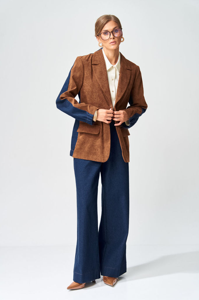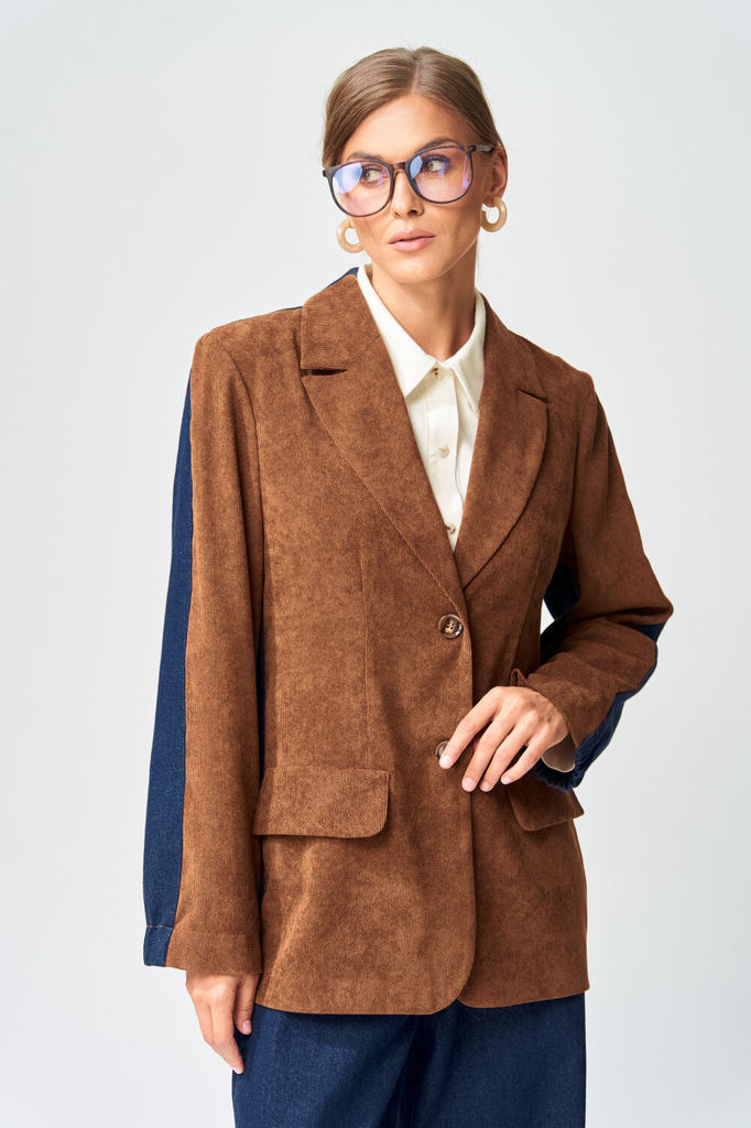 Состав: Жакет- ПЭ-100%; Жакет- Хлопок-100%; Сезон: Осень-Зима Рост: 170 Страна бренда: Беларусь Состав: Жакет: ПЭ-100%; Жакет: Хлопок-100%; Жакет прямого силуэта сзади с имитацией куртки. Перед из вел... Показать описаниеьветовой ткани, спинка из хлопковой джинсовой. Застежка однобортная на 2 петли и пуговицы. Воротник пиджачного типа. Перед с талиевой вытачкой, рельефом и декоративным клапаном. Спинка с кокеткой и складкой. Рукав втачной двухшовный. Низ спинки и нижней части рукава собраны на резинку. Длина жакета - 70 см, длина рукава жакета - 60 см.