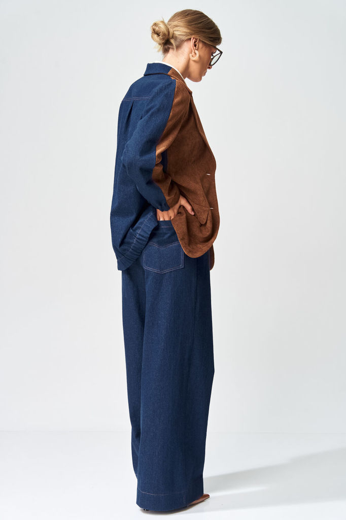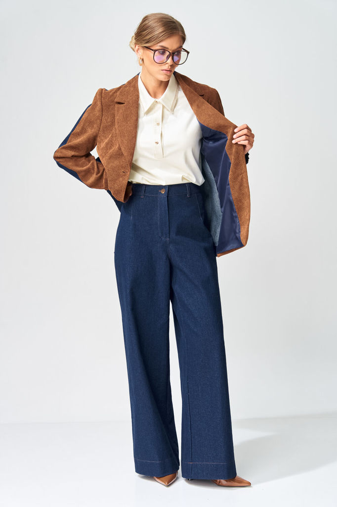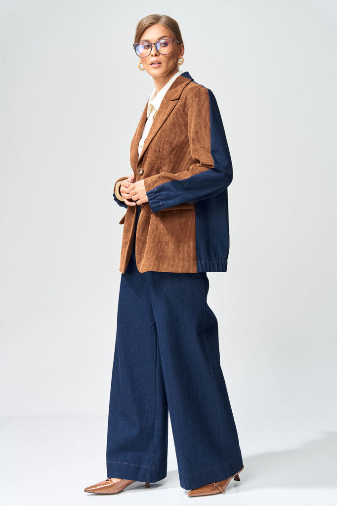 Состав: Жакет- ПЭ-100%; Жакет- Хлопок-100%; Брюки- Хлопок-100%; Сезон: Осень-Зима Рост: 170 Страна бренда: Беларусь Состав: Жакет: ПЭ-100%; Жакет: Хлопок-100%; Брюки: Хлопок-100%; Костюм состоит из жа... Показать описаниекета и брюк. Жакет прямого силуэта сзади с имитацией куртки выполнен из вельветовой и хлопковой джинсовой ткани. Застежка однобортная на 2 петли и пуговицы. Воротник пиджачного типа. Перед с талиевой вытачкой, рельефом и декоративным клапаном. Спинка с кокеткой и складкой. Рукав втачной двухшовный. Низ спинки и нижней части рукава собраны на резинку. Брюки расширеные книзу на притачном поясе. По поясу настрочены шлевки. По передним и задним частям брюк вытачки. На задних частях брюк настрочены карманы. Карманы, вытачки, пояс, низ брюк отделаны отделочной строчкой. Длина жакета - 70 см, длина рукава - 60 см. Длина брюк с учетом пояса -109 см. Данная модель прекрасно сочетается с другой моделью из нашей коллекции 15409. Создайте гармоничный образ, комбинируя эти изделия!