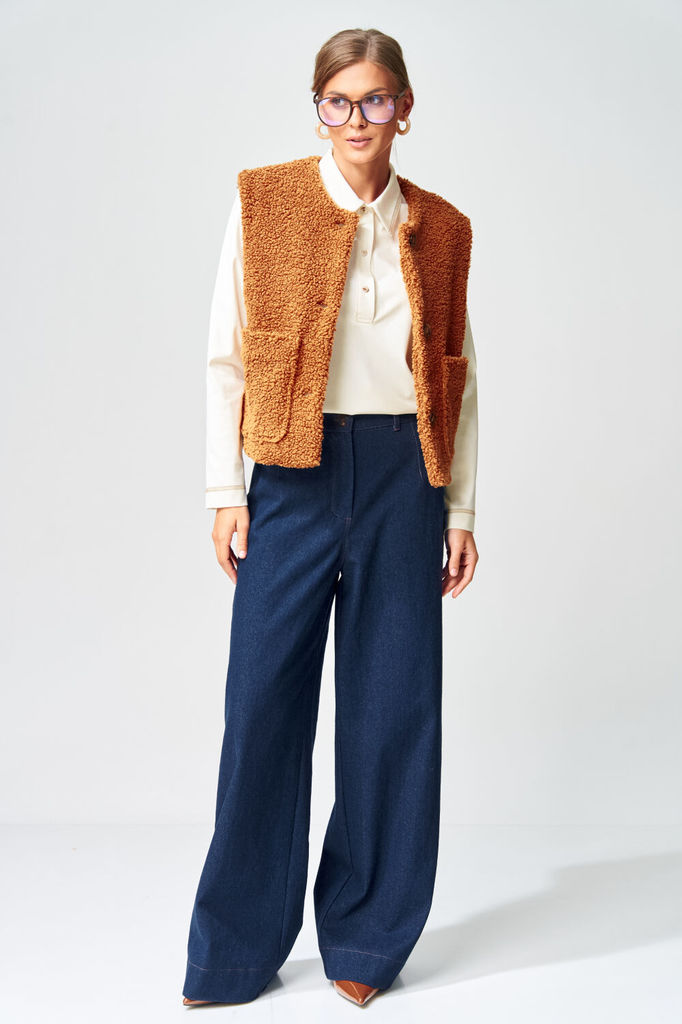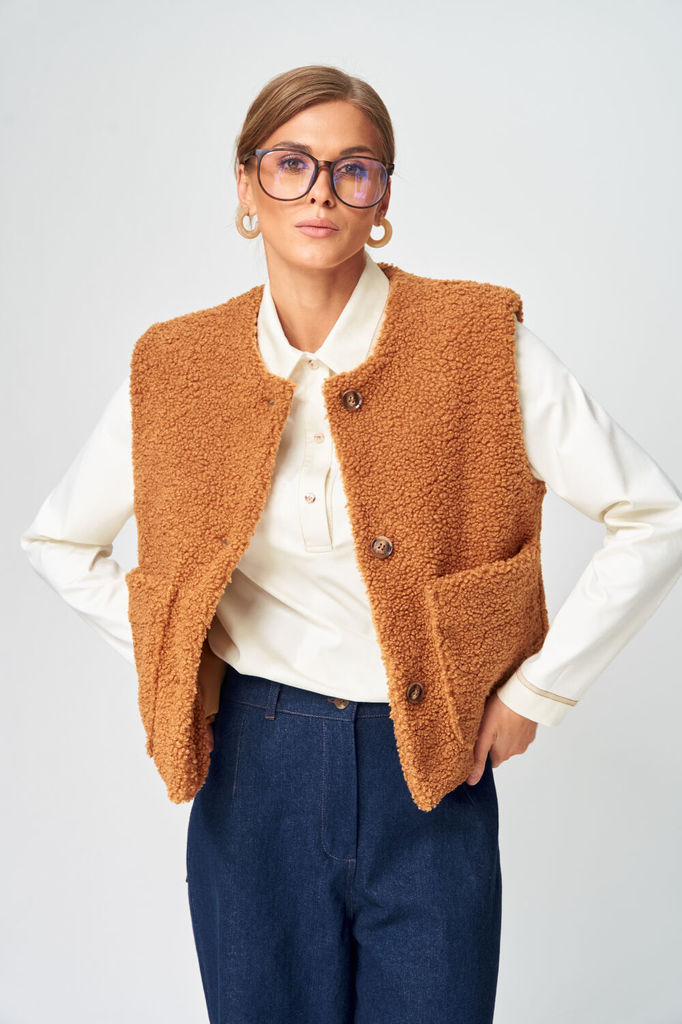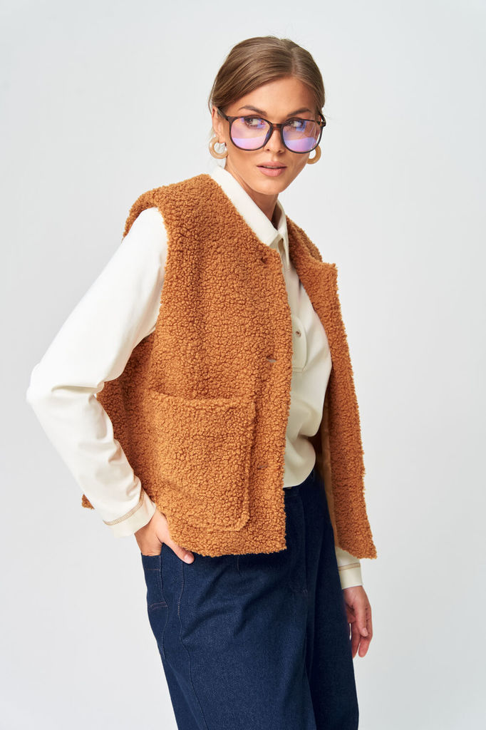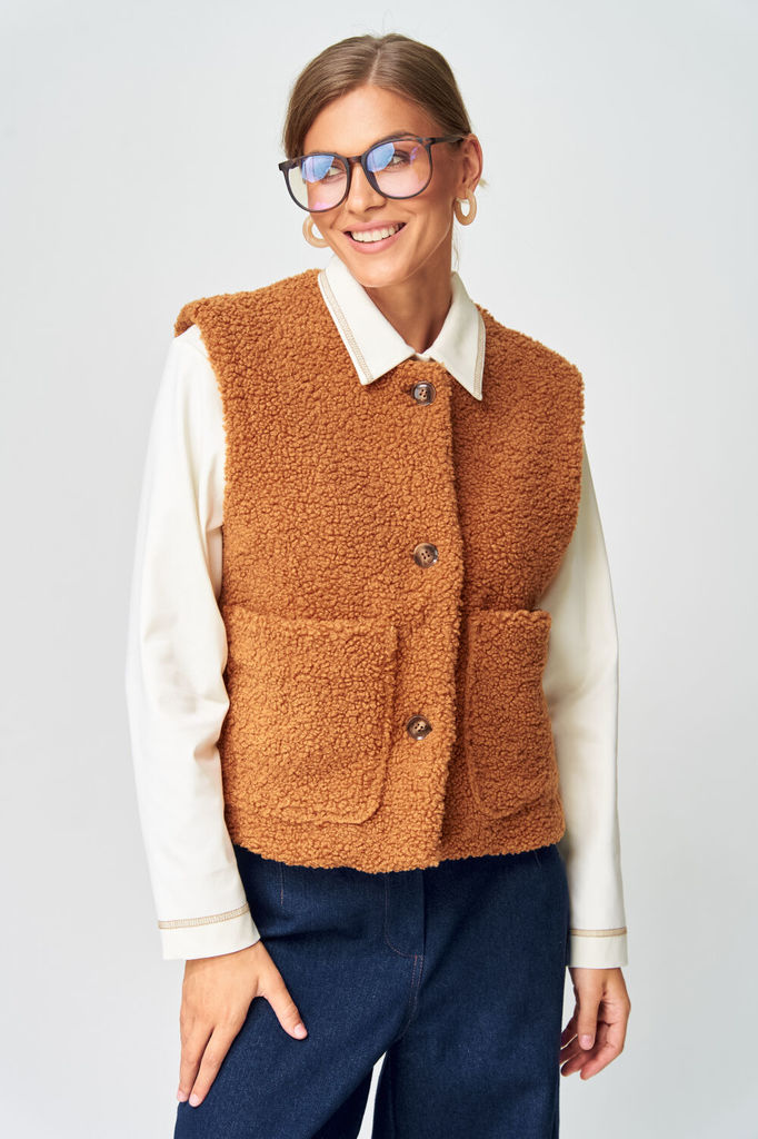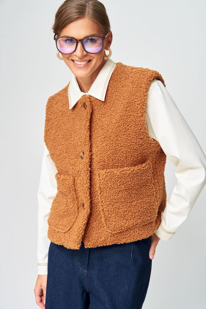 Состав: ПЭ-100%; Сезон: Осень-Зима Рост: 170 Страна бренда: Беларусь Состав: ПЭ-100%; Жилет прямого свободного силуэта из теплой ткани "барашек". Перед с настрочными карманами. Застежка на 3 пет... Показать описаниели и пуговицы. Жилет на подкладке. Длина жилета - 52 см. Данная модель прекрасно сочетается с другими моделями из нашей коллекции 15409, 35377. Создайте гармоничный образ, комбинируя эти изделия!