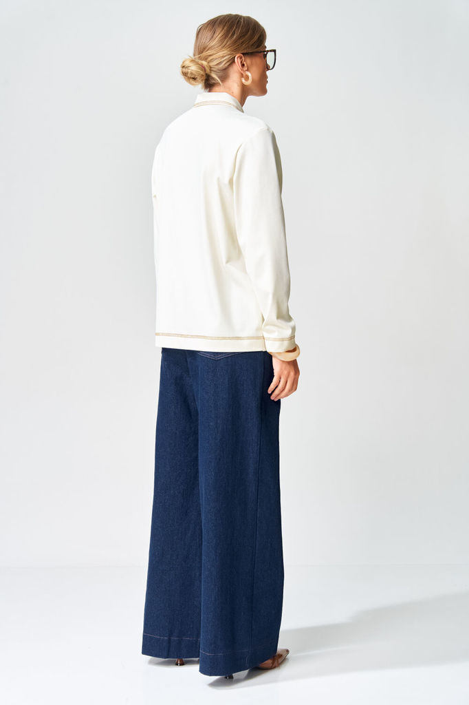 Состав: ПЭ-26%; Хлопок-72%; Эластан-2%; Сезон: Весна Рост: 170 Страна бренда: Беларусь Состав: ПЭ-26%; Хлопок-72%; Эластан-2%; Костюм состоит из жакета и брюк из джинсовой хлопковой ткани. Жакет... Показать описание полуприлегающего силуэта с воротником пиджачного типа. Застежка однобортная на две пуговицы. Перед с талиевой вытачкой, рельефом и декоративным клапаном. Спинка с рельефами из проймы и средним швом. Рукав втачной двухшовный. Брюки расширеные книзу на притачном поясе. По поясу настрочены шлевки. По передним и задним частям брюк вытачки. На задних частях брюк настрочены карманы. Карманы, вытачки, пояс, низ брюк отделаны отделочной строчкой. Длина жакета - 68см, длина рукава жакета - 60 см, длина брюк с учетом пояса -107 см