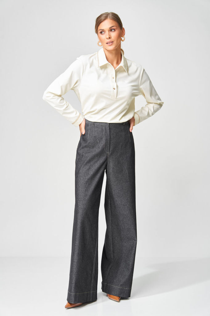 Состав: Хлопок-100%; Сезон: Осень-Зима Рост: 170 Страна бренда: Беларусь Состав: Хлопок-100%; Брюки расширеные книзу на притачном поясе из джинсовой хлопковой ткани. По поясу настрочены шлевки. ... Показать описаниеПо передним и задним частям брюк вытачки. На задних частях брюк настрочены карманы. Карманы, вытачки, пояс, низ брюк отделаны отделочной строчкой. Длина брюк с учетом пояса - 109 см. Данная модель прекрасно сочетается с другими моделями из нашей коллекции 15409, 15377, 15408/1, 15368. Создайте гармоничный образ, комбинируя эти изделия!