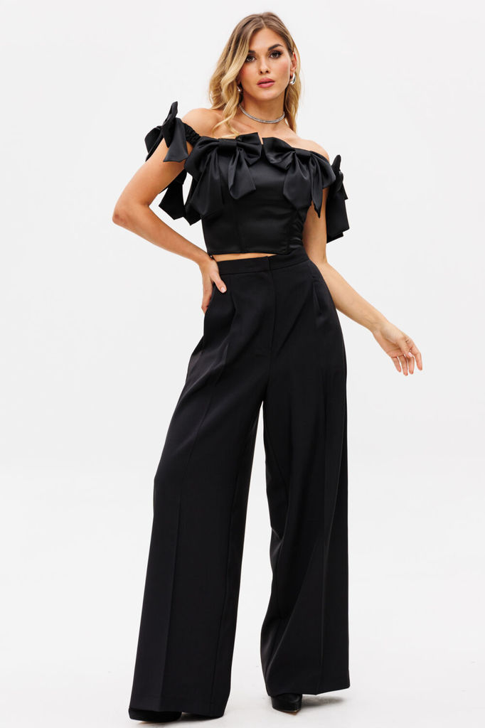 Состав: ПЭ-96%; ПУ-4%; Брюки-палаццо выполнены из костюмной ткани. Брюки на притачном поясе, длиной в пол, по бокам лампасы из атласа, складки и боковые карманы. Застежка спереди на молнию. Передняя ... Показать описаниеи задняя часть брюк заутюжены на кант. Съемный ремень в комплект не входит!!! Длина брюк с поясом - 115 см Гарантийный срок не установлен. ГОСТ 25294-2003 Длина по боковому шву 115 115 115 116 116 116 Объем по талии 68 72 76 80 84 88 Объем по бедрам 96 100 104 108 112 116 Объем по голени 68 70 72 72 74 76 Ширина пояса 3,5 3,5 3,5 3,5 3,5 3,5